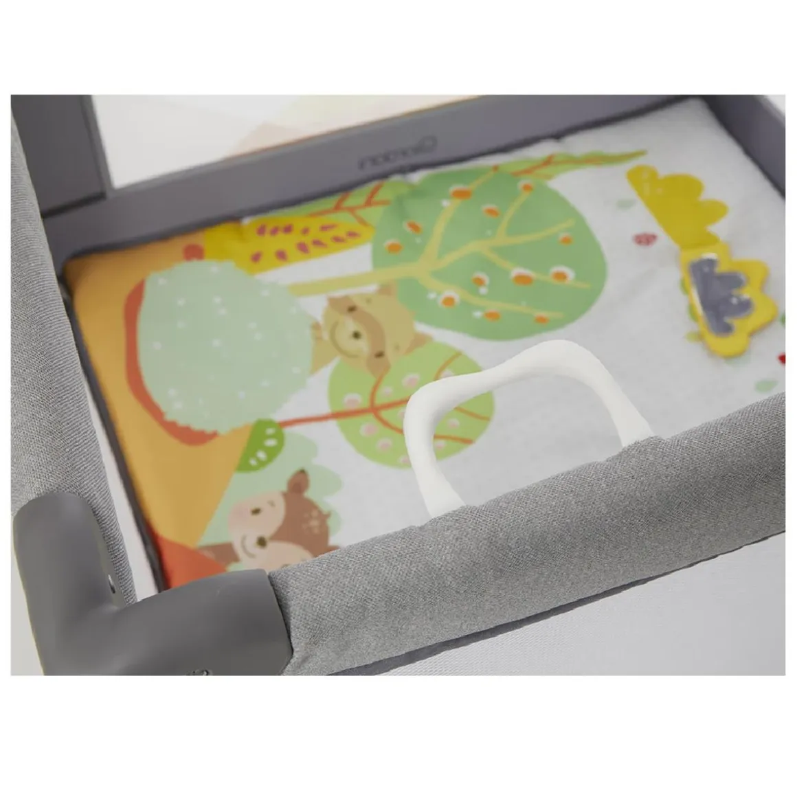 - Fácil almacenamiento: Cuando no se utiliza, la caja de parque se pliega de manera compacta, facilitando su almacenamiento en espacios reducidos sin ocupar mucho espacio.