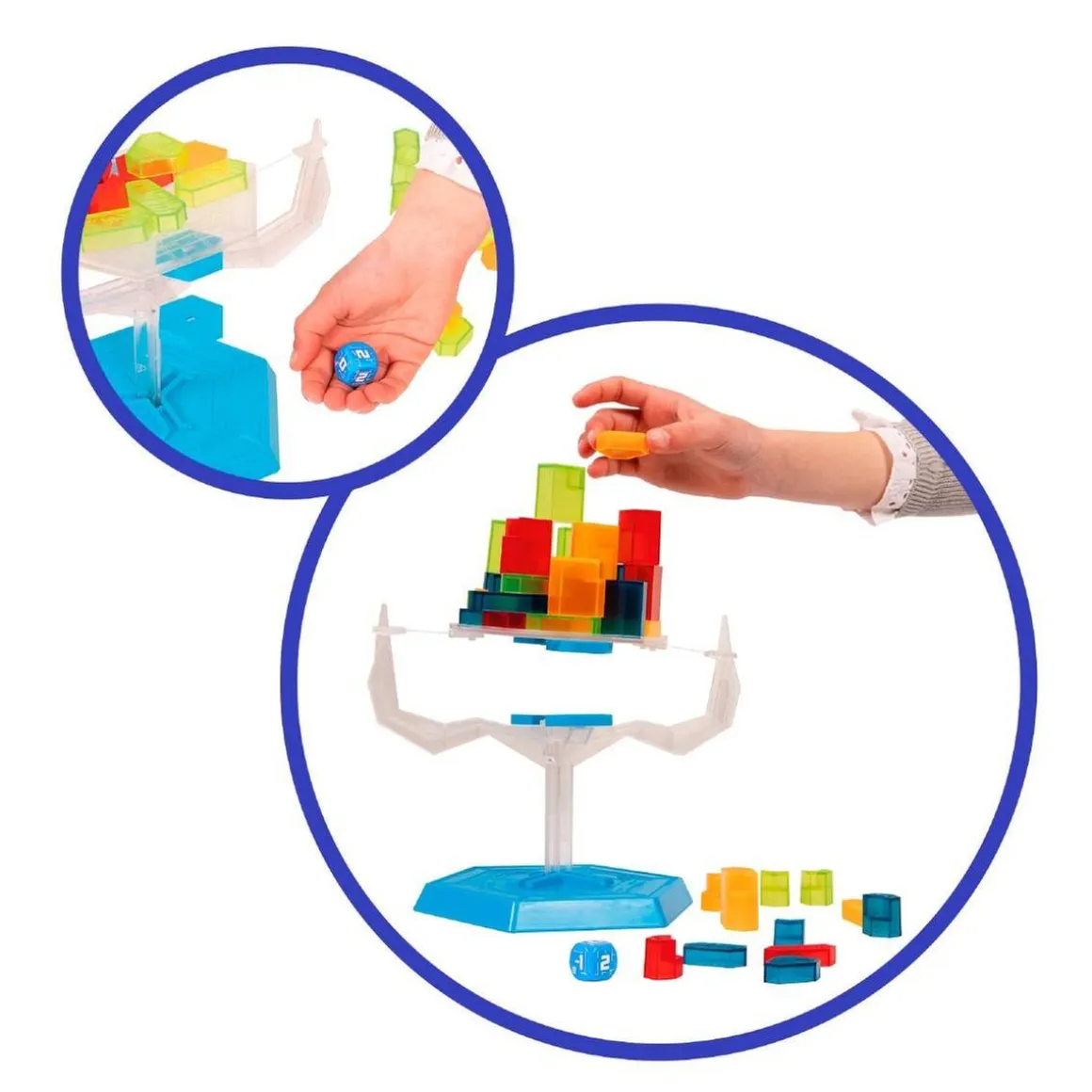 El objetivo del juego es crear una torre sobre una base colgante, que se irá moviendo cada vez que coloquéis o quitéis piezas según os indique el dado.