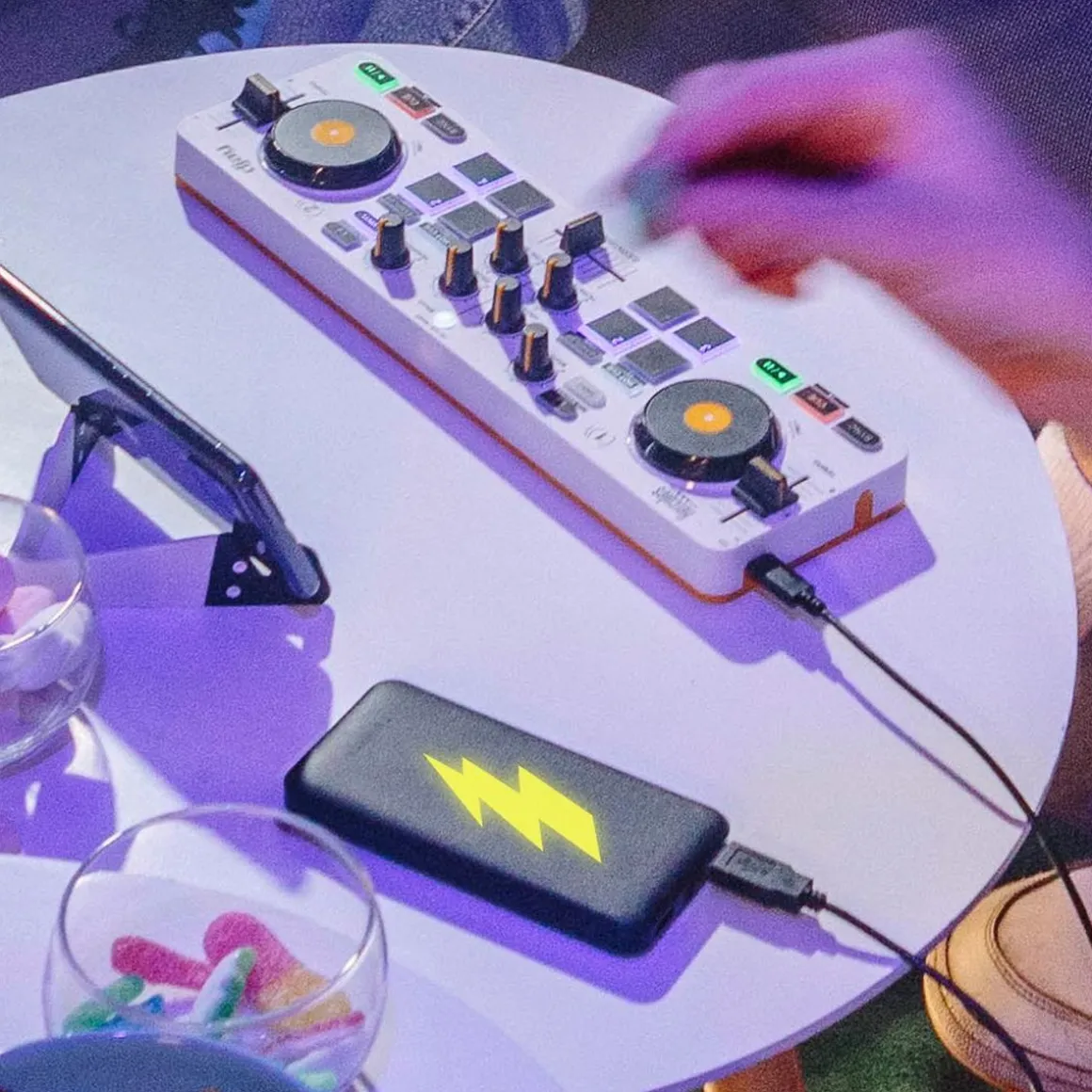 La DJControl Mix portátil se puede meter en una mochila para llevarla a cualquier parte. Da rienda suelta a tu creatividad, emula los vídeos tendencia más populares o conviértete en el DJ emergente en una pequeña fiesta en casa. La DJControl Mix funciona con una batería externa o una fuente de alimentación USB y se conecta a la aplicación gratuita Algoriddim djay mediante Bluetooth. Es fácil mezclar en cualquier momento y lugar.