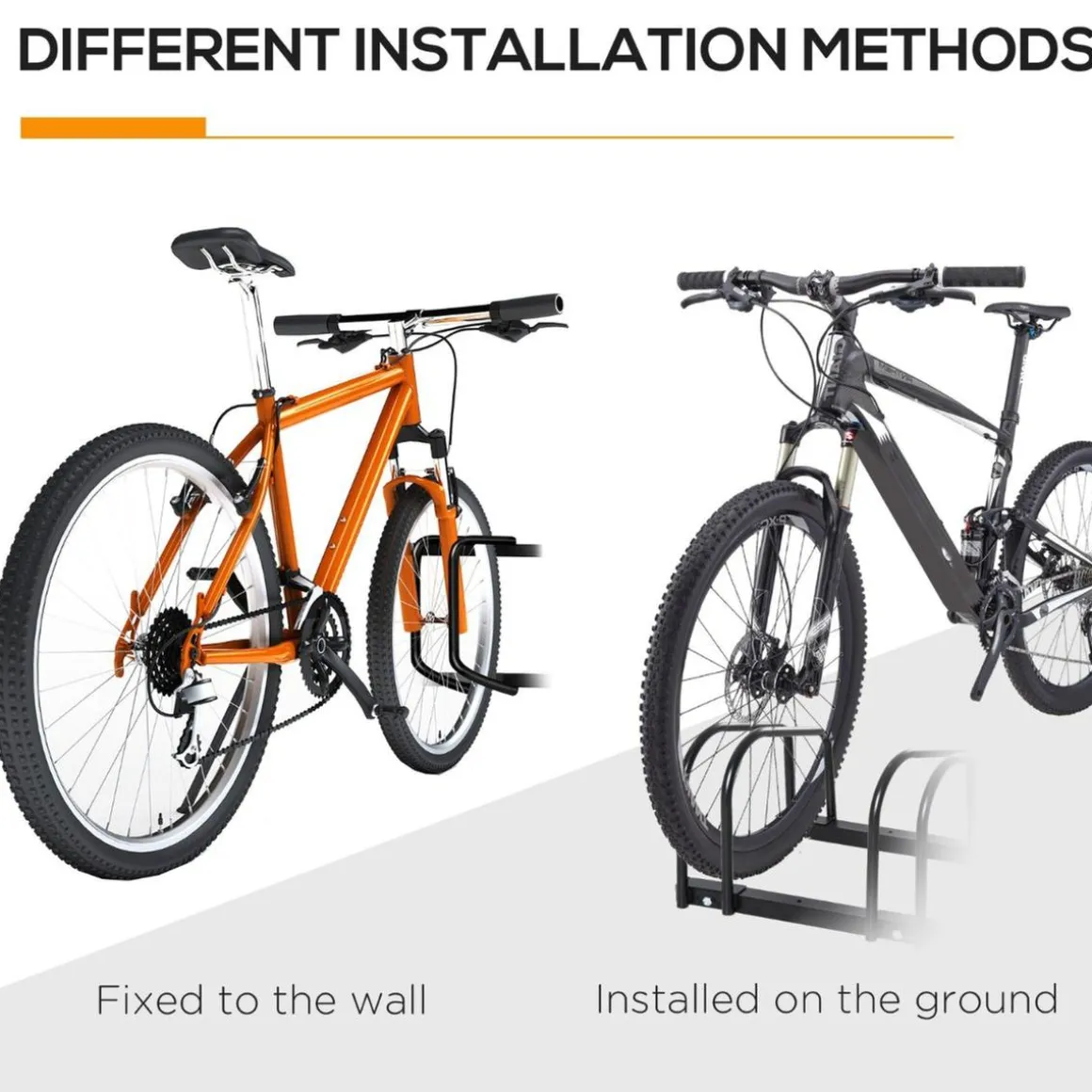 Si no tienes espacio suficiente en casa o no sabes como estacionar tus bicicletas de manera ordenada, los aparcamientos para bicis de Homcom son la solución. Se pueden instalar en suelos tanto de interior como exterior y vienen con los tornillos incluidos para su montaje. Fabricados con una estructura de acero desmontable, puedes utilizar los soportes de forma individual o montarlos según necesidad. A partir de ahora tus bicicletas siempre estarán bien aparcadas y seguras.