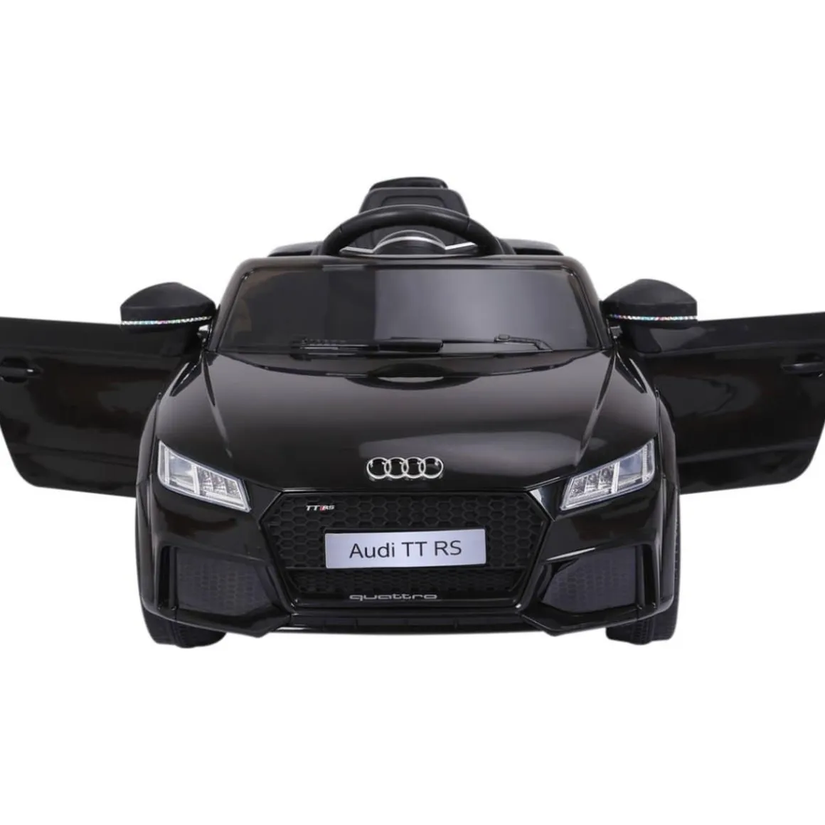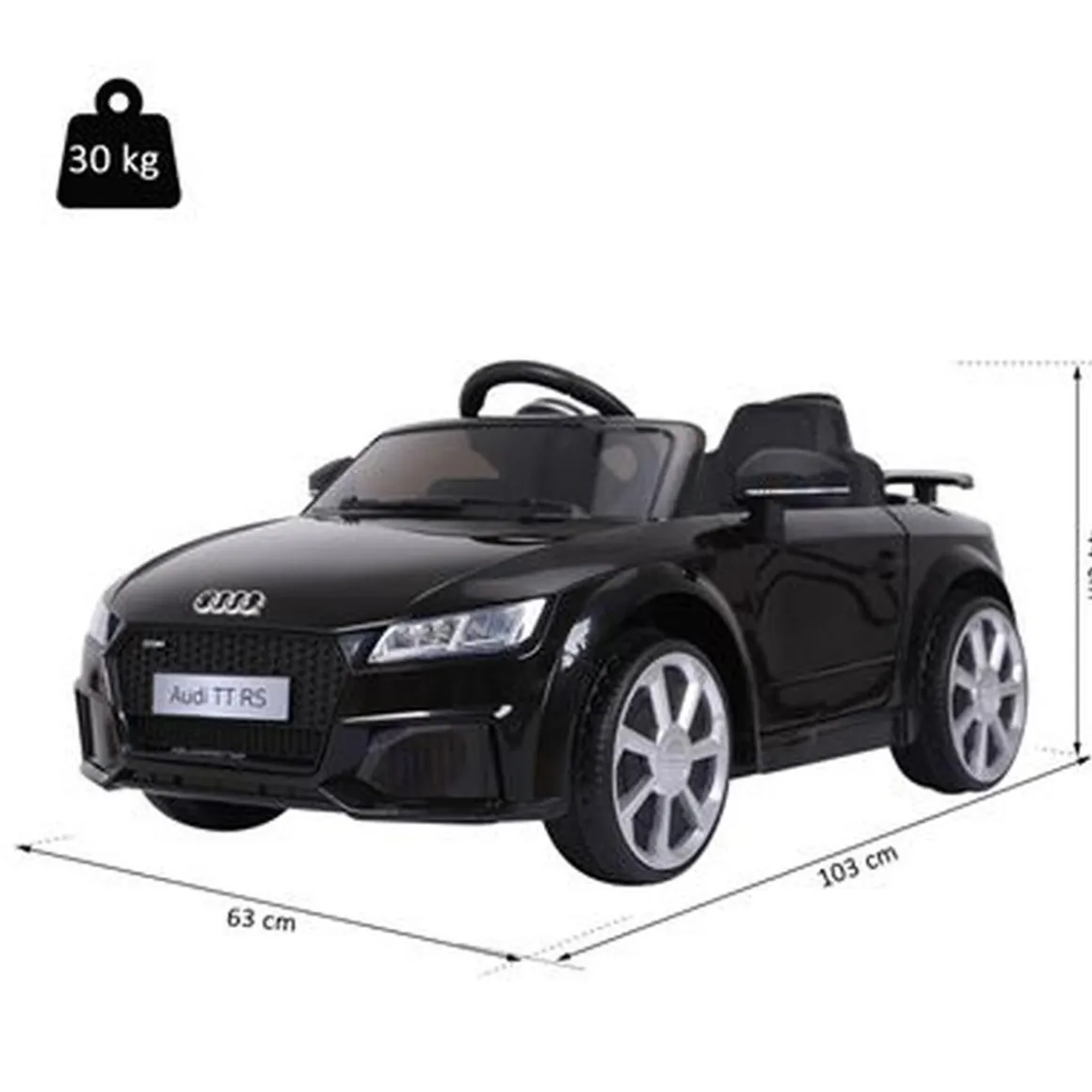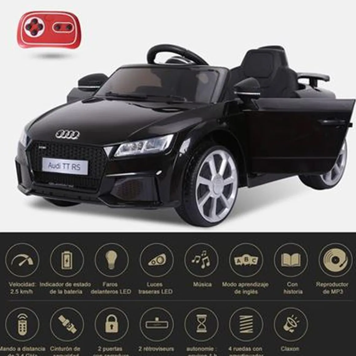 Homcom – Audi TT eléctrico negro, un vehículo con marcha hacia delante y hacia atrás y con mando a distancia para control parental.