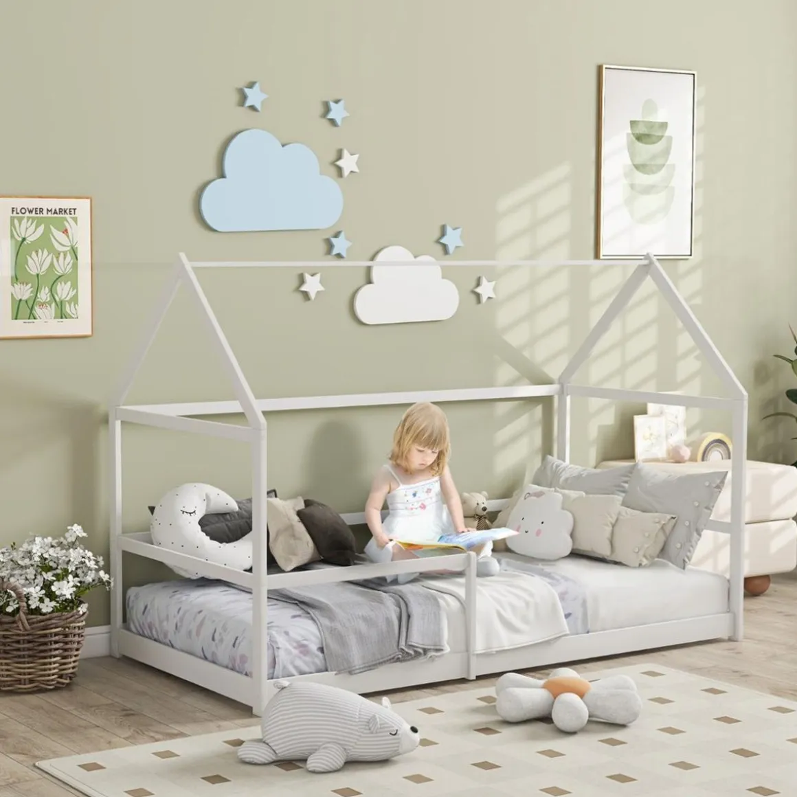 Convierte la hora de dormir de tus peques en una experiencia mágica con esta cama individual de HOMCOM en forma de casita.