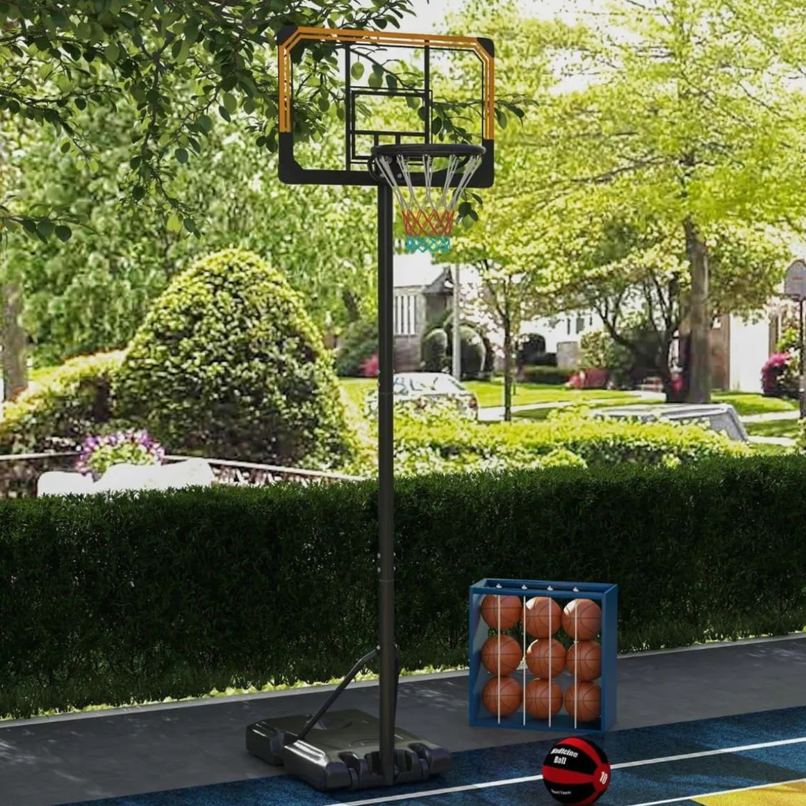 - Canasta de baloncesto con soporte adecuada tanto para interior como exterior.