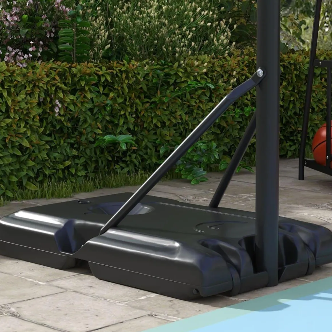 - Las ruedas en la base permiten mover la canasta de baloncesto con facilidad.