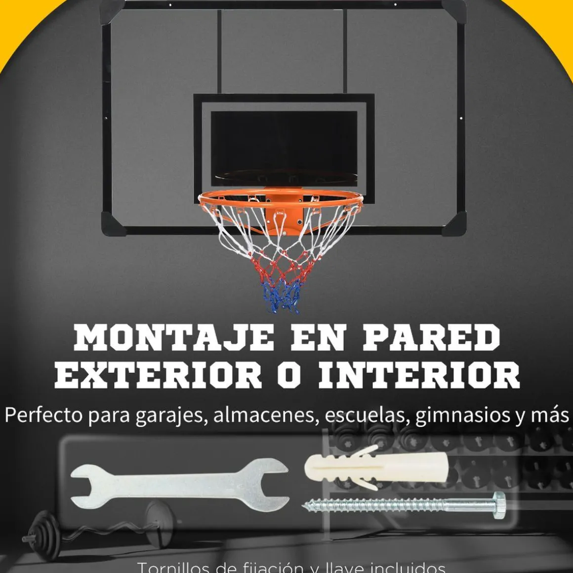- Canasta de baloncesto con tablero para ir montada en la pared.