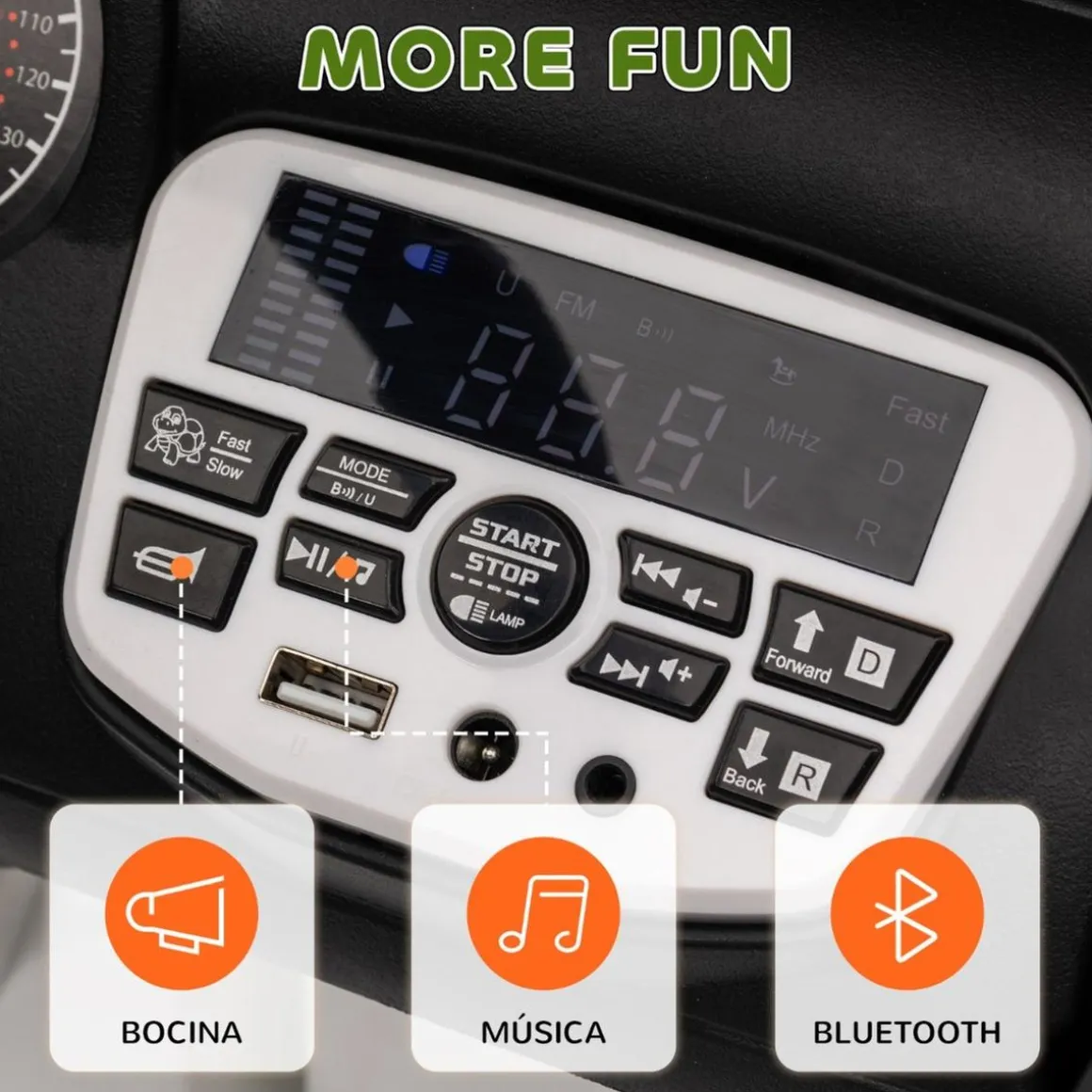 Permite elegir entre tres velocidades ajustables con control remoto y ofrece bluetooth y música para una diversión máxima.