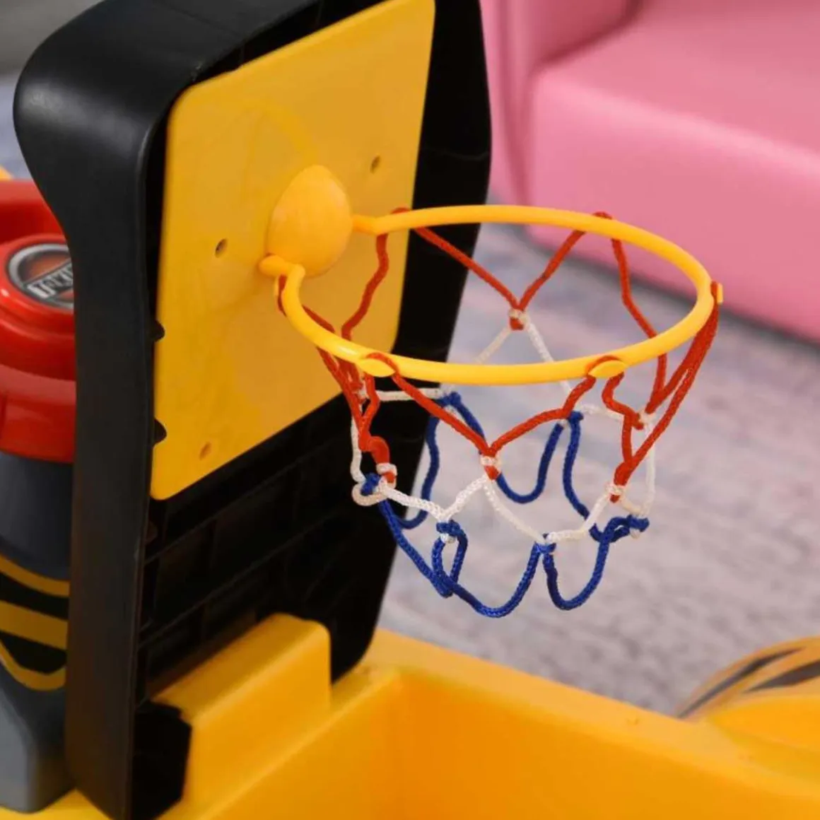 No sigas buscando el regalo perfecto para los más peques de la casa porque acabas de encontrarlo gracias a esta excavadora con pala y aro de baloncesto para niños pequeños.