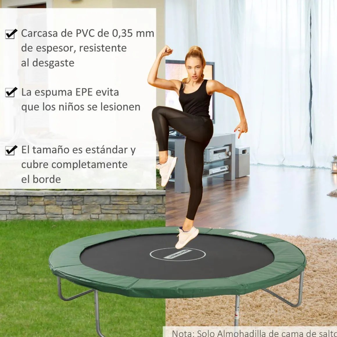 - Funda de protección de trampolín ideal para proteger a los usuarios de posibles lesiones.