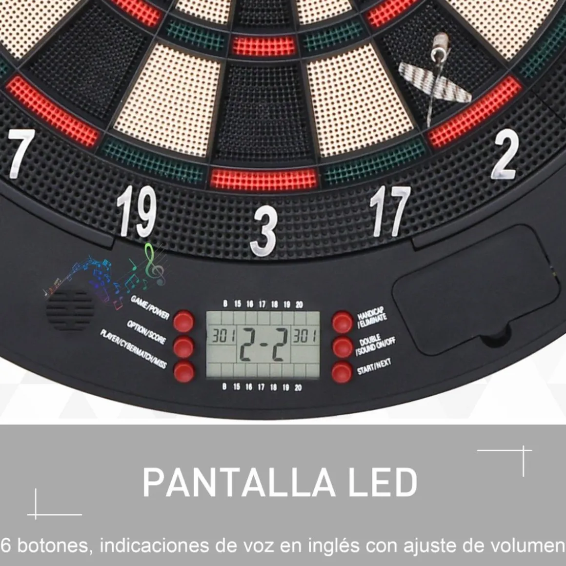Homcom – Diana electrónica digital, con 26 juegos y 185 opciones de puntuación. Permite que jueguen al mismo tiempo hasta un máximo de 8 jugadores. Incluye 6 dardos.
