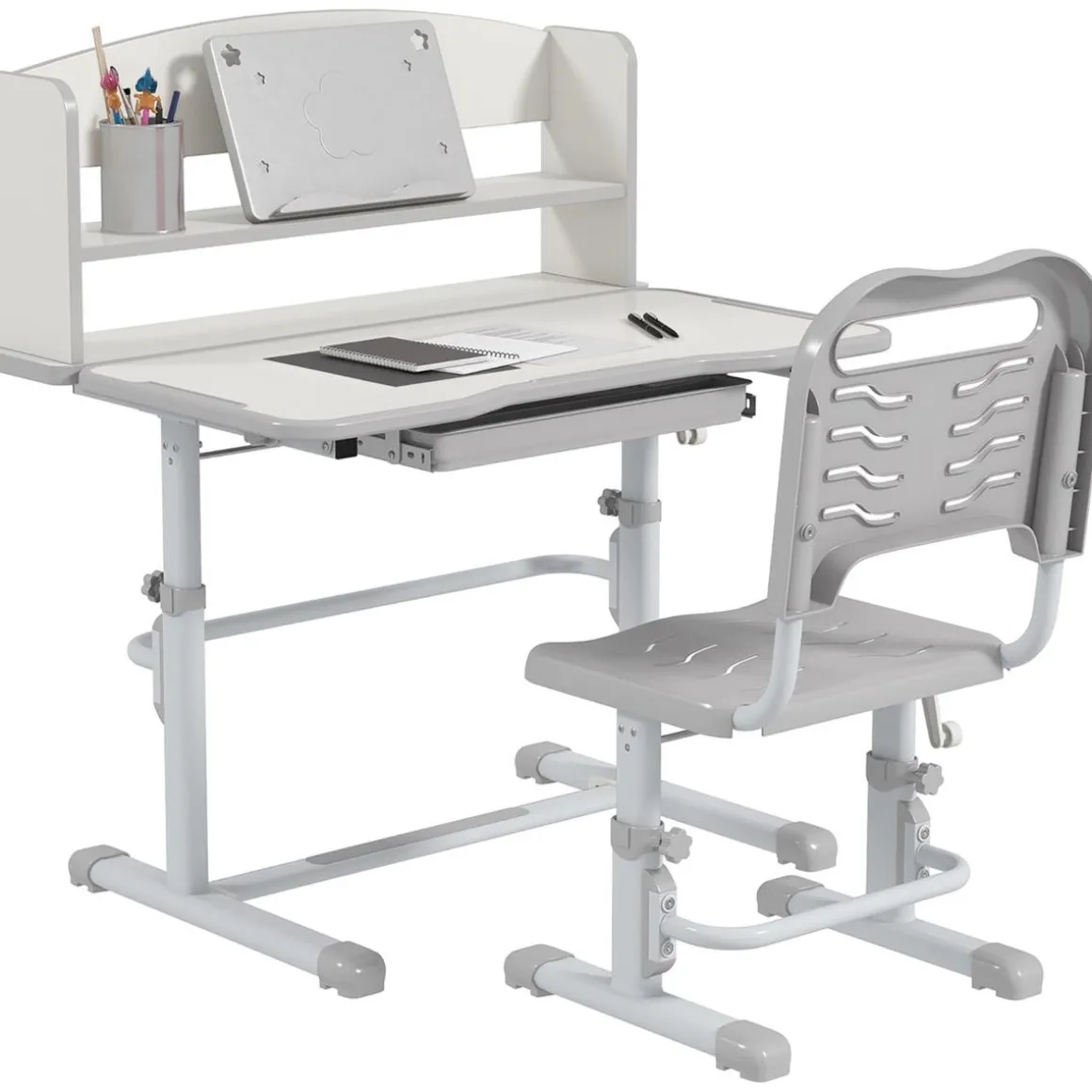 Homcom – Escritorio y silla ajustable Gris y Blanco, un conjunto que se adapta al crecimiento de los niños.