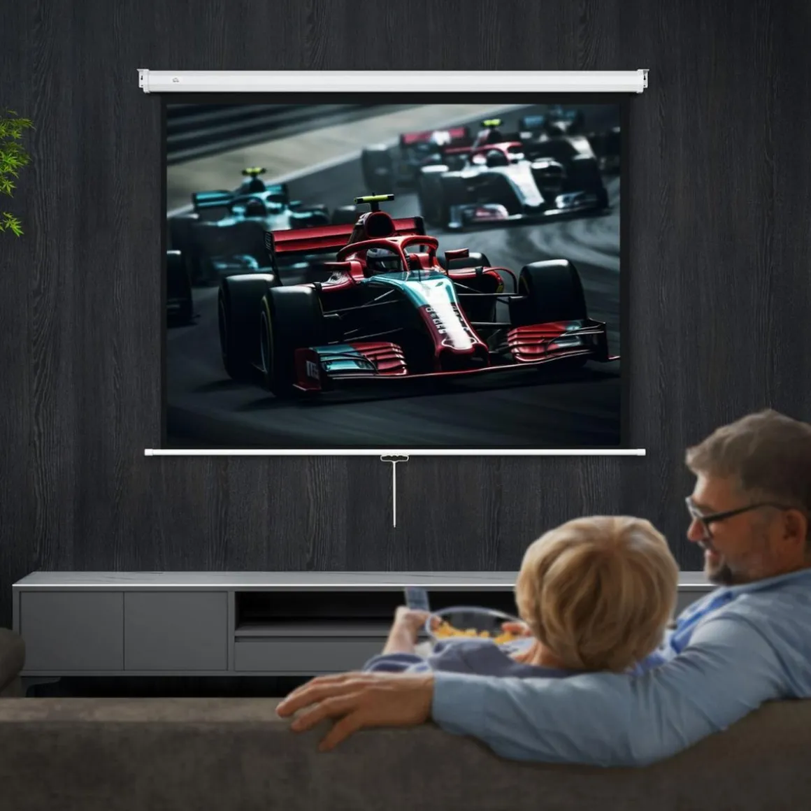 - Pantalla de proyección enrollable con superficie mate de alta calidad, resistente a arrugas y fácil de limpiar.