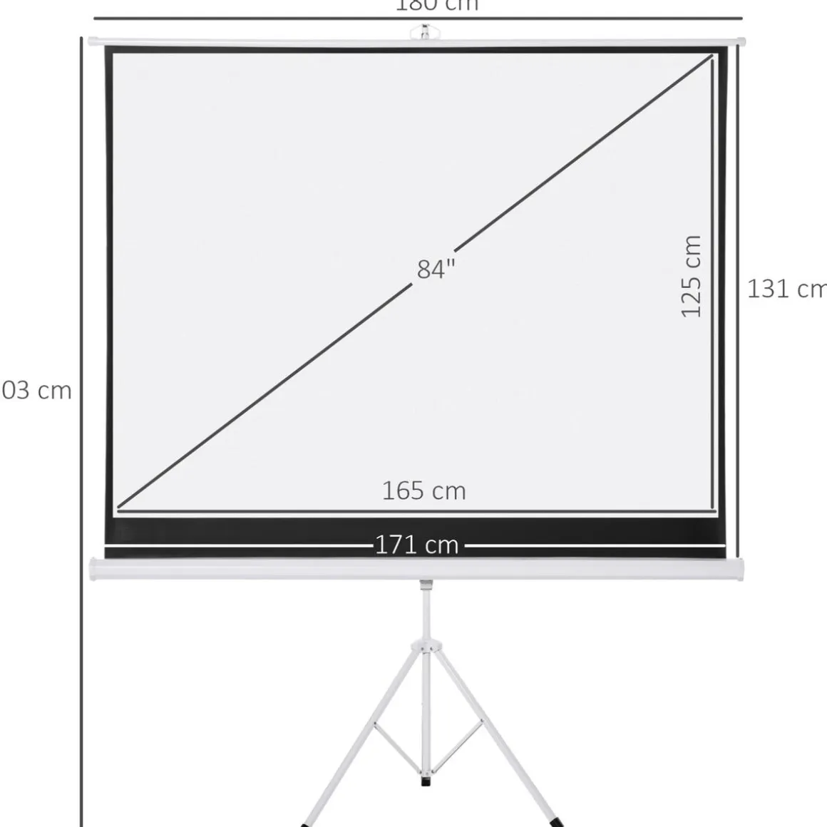 Homcom – Pantalla de proyección 84» con soporte Blanco, una pantalla de proyección portátil que es el complemento perfecto para ver tus películas favoritas cómodamente desde el sofá con tu familia o amigos, o para tener en la oficina para presentaciones de proyectos y reuniones.