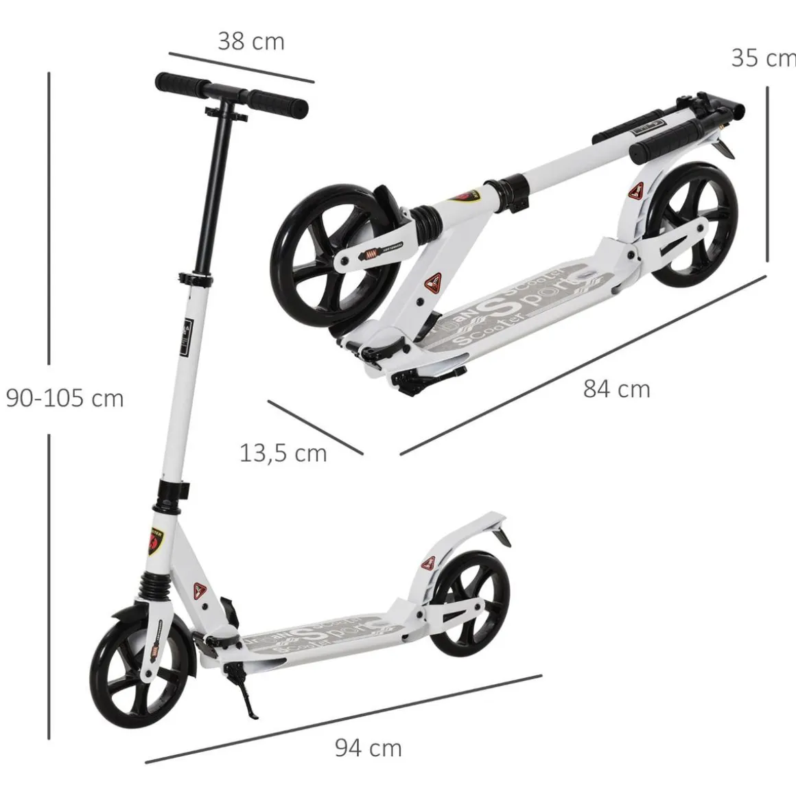 Homcom – Patinete plegable blanco, un patinete para pasar tiempo al aire libre, hacer ejercicio, mantener el equilibrio, practicar la conducción.