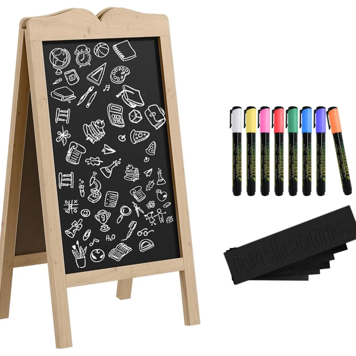 Esta pizarra doble con caballete de Vinsetto es perfecta para restaurantes, eventos y muchas otras ocasiones. Viene con 8 marcadores de tiza líquida y 6 plantillas de palabras para una personalización rápida y sencilla.