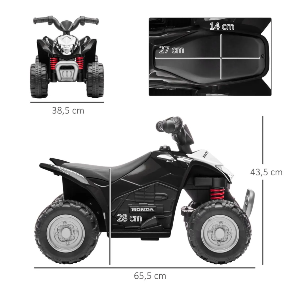 Homcom – Quad eléctrico Honda Negro, un vehículo equipado con funciones realistas como faros LED y bocina para fomentar la imaginación y el espíritu aventurero de los más pequeños.