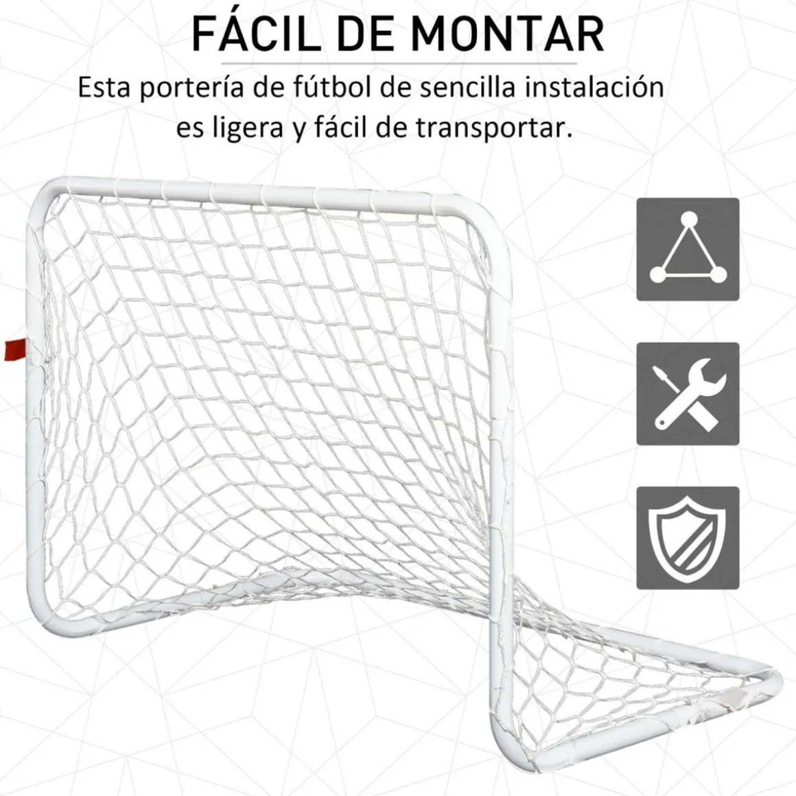 - Set completo. Este juego de mini porterías de fútbol para niños, incluye dos porterías, un balón de fútbol de 23 cm de diámetro y un inflador. para jugar en el patio o en un lugar espacioso y disfrutar del deporte con tu familia y amigos o solo.