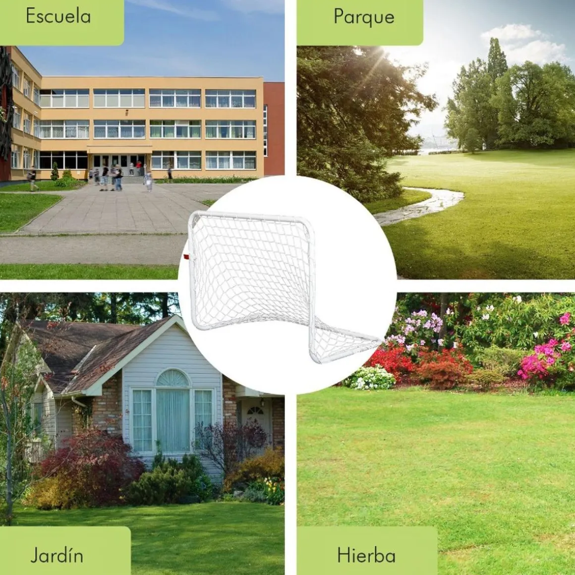- Cada portería de fútbol está hecha de un marco de metal con revestimiento en polvo y malla de poliéster, apta para todas las edades.