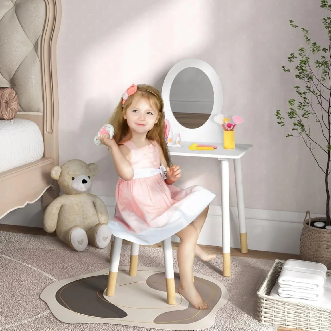 Revitaliza el espacio de tu hijo con este set de tocador infantil. Este encantador conjunto de dos piezas consta de un tocador con espejo acrílico de seguridad para niños y un taburete a juego. El espejo es perfecto para que los niños se maquillen, se peinen y se sientan realmente como auténticos príncipes y princesas. Fabricado en MDF seguro, este tocador es ideal para un uso prolongado.