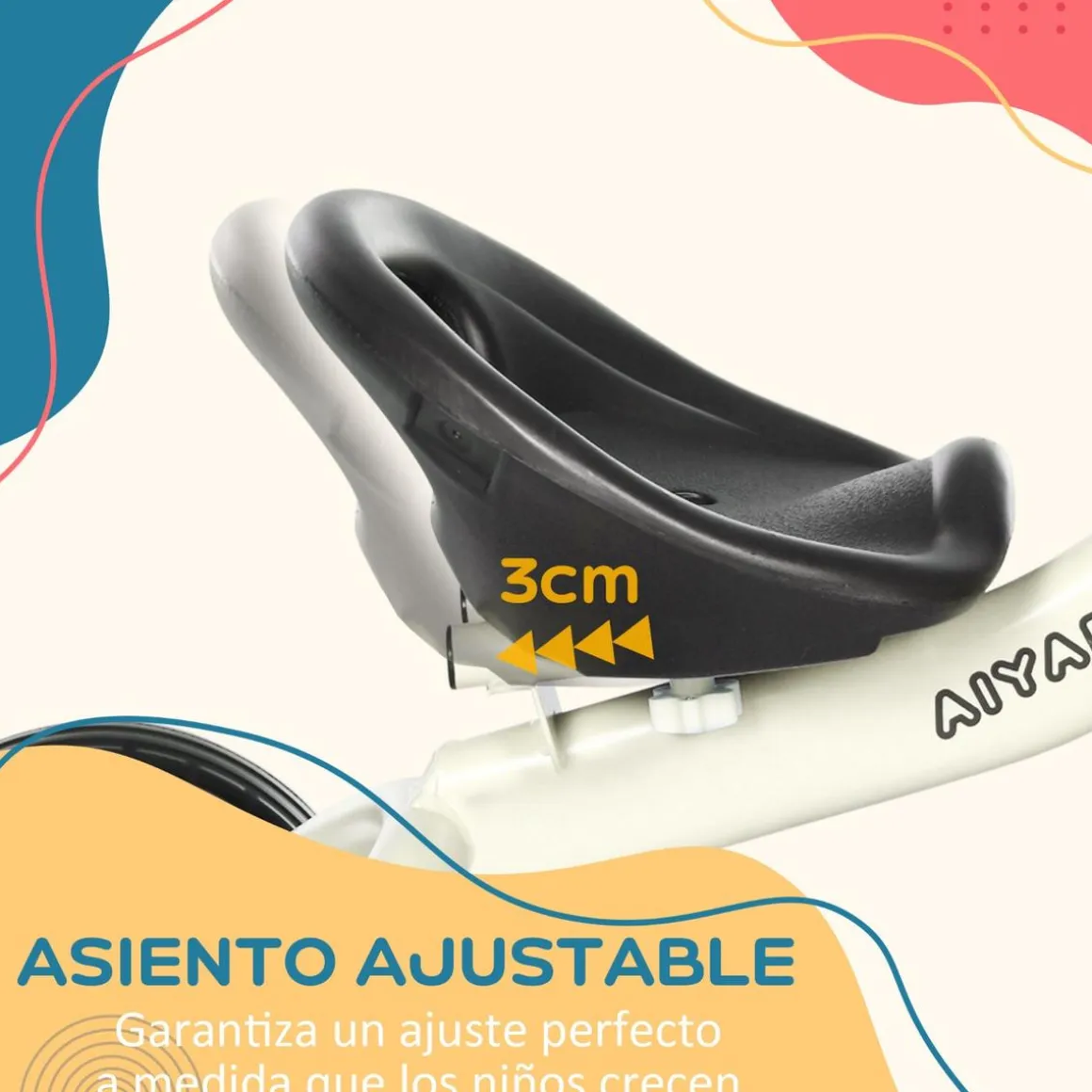 - Asiento ajustable. Prepáralos para su primera bicicleta con este triciclo fácil de manejar y pedalear. Nuestro triciclo para niños está diseñado para crecer con ellos, por lo que el asiento se puede ajustar 3 cm hacia adelante y hacia atrás.