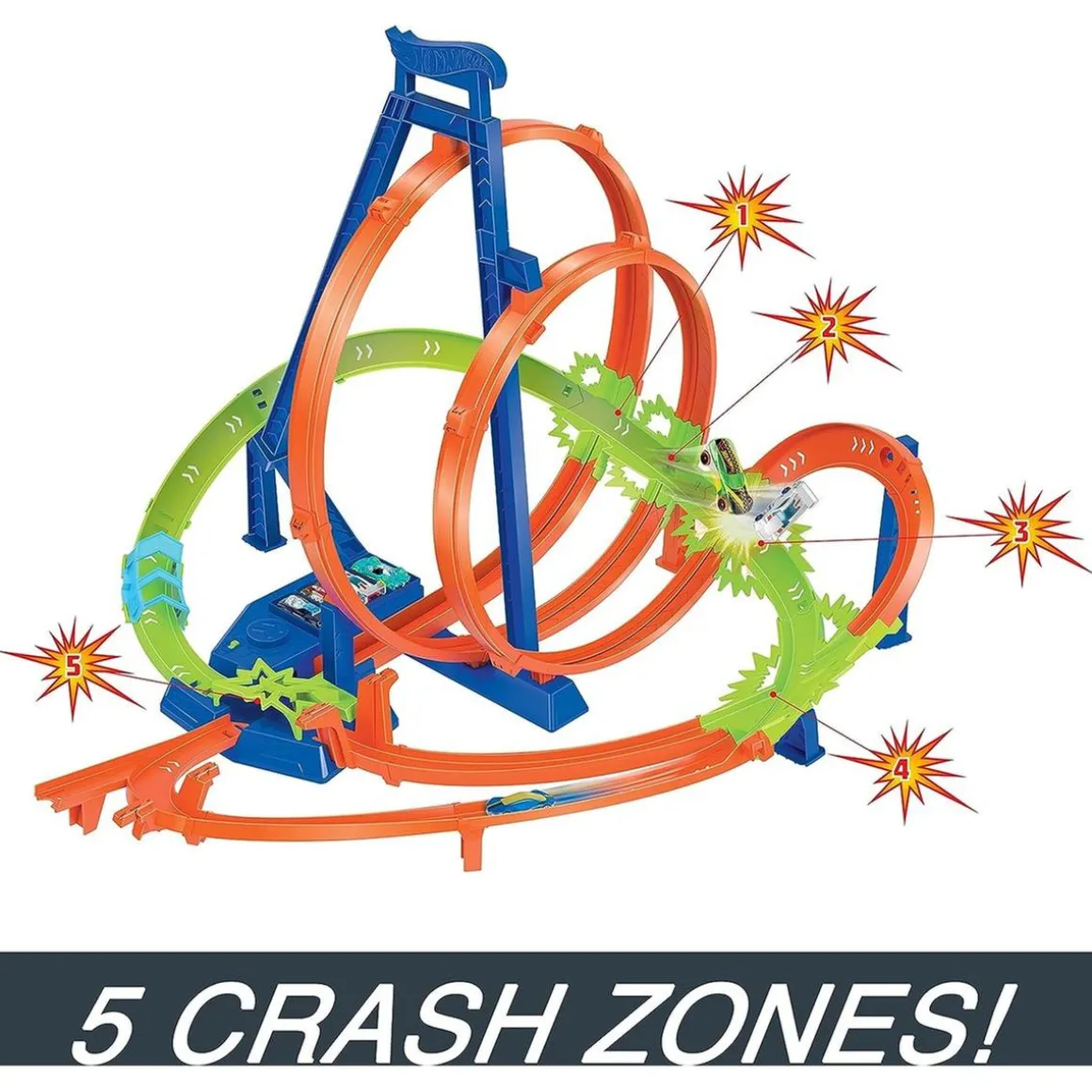 Este conjunto de pista Carrera de choques épicos incluye uno de nuestros coches Hot Wheels en vistosos colores. Pero no te preocupes, no sólo se ve bien, también tiene un rendimiento impresionante en el circuito de la pista. ¡Corre, gira y choca para aumentar la emoción!