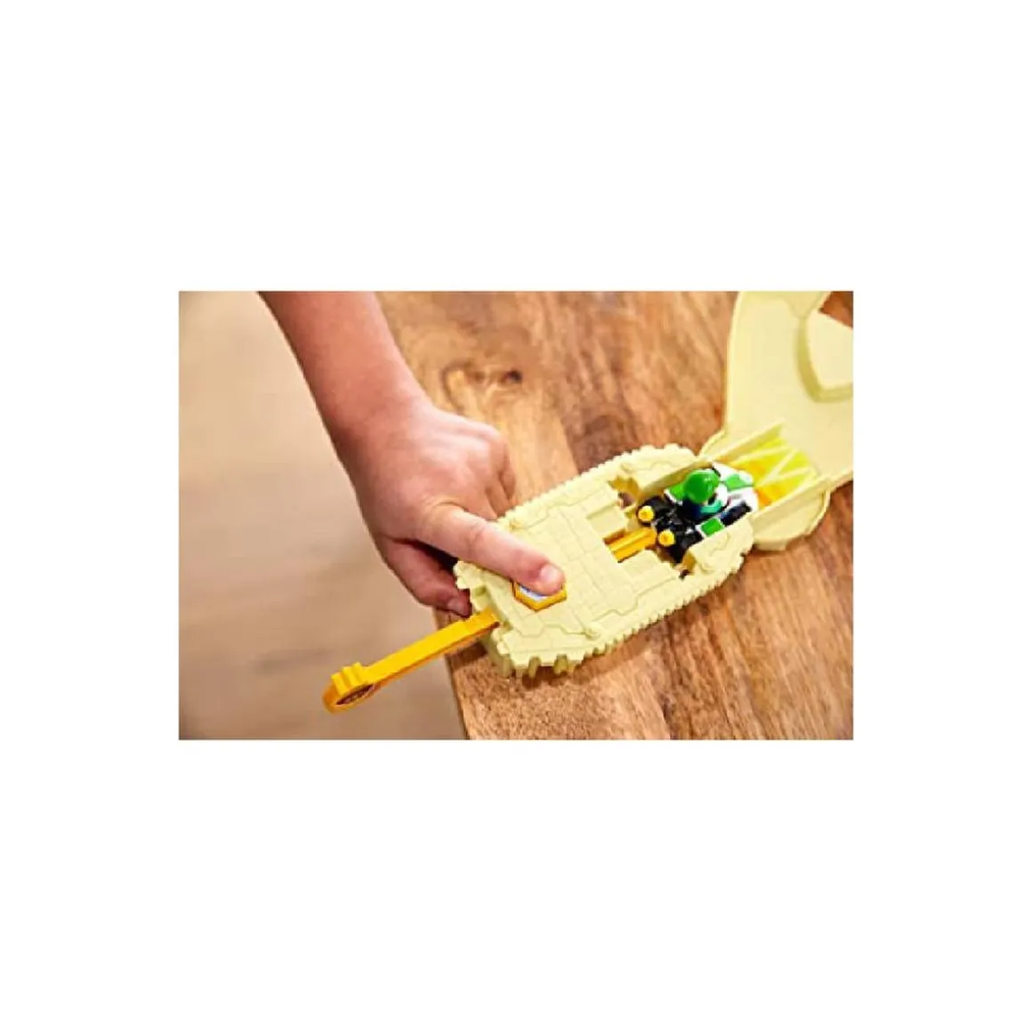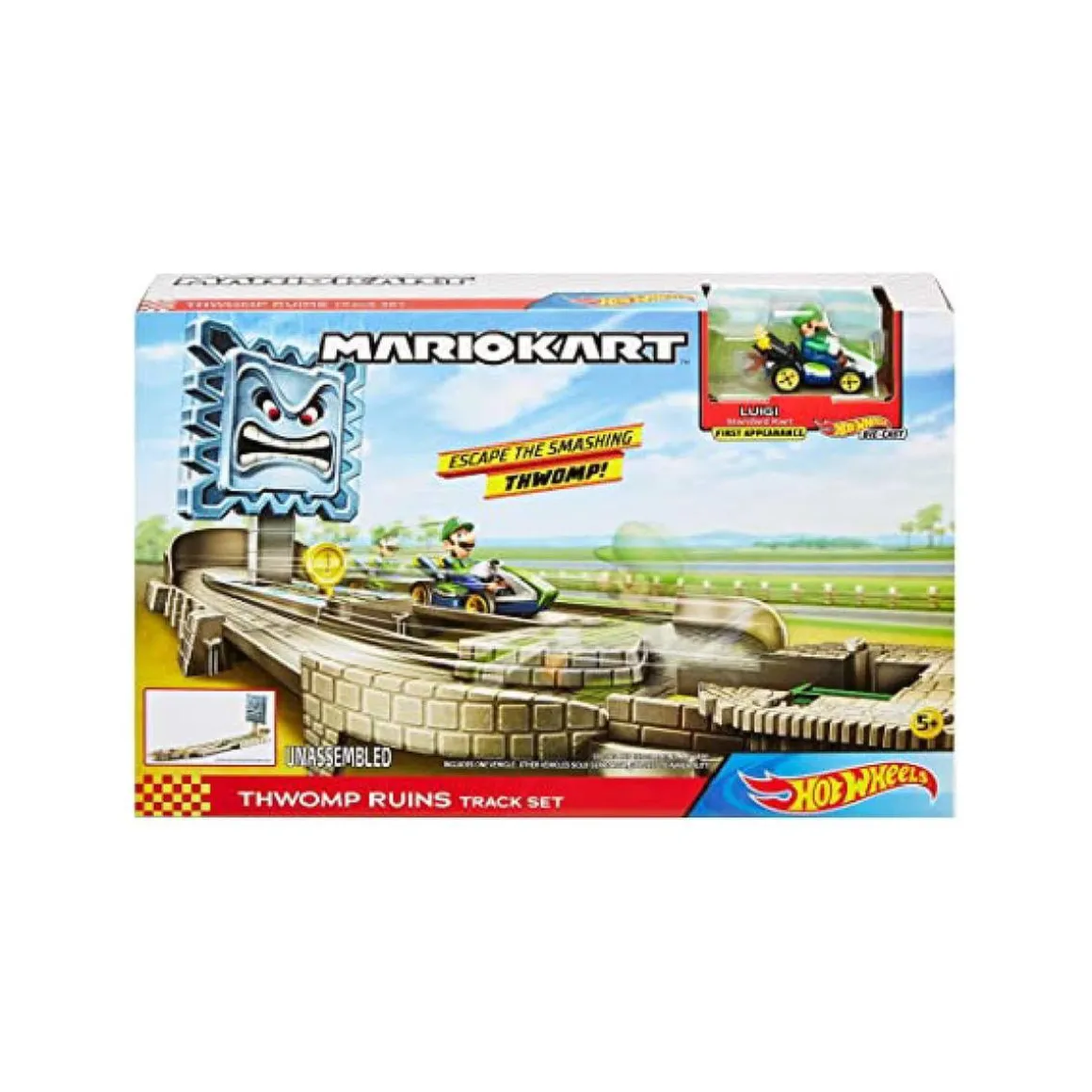 Lanza el kart metálico de Luigi como en el juego, pero esta vez en una pista de Hot Wheels! Mantenerse firme en la pista es la clave para ser el corredor más rápido de la carrera.