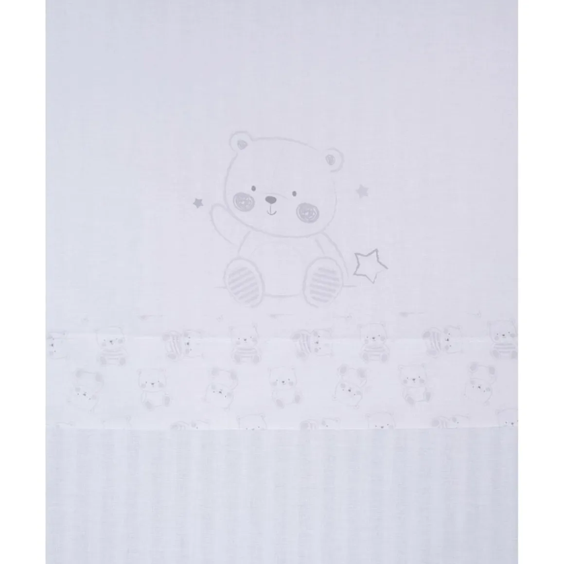 El diseño destaca por una simpática impresión de un osito que se repite en las delicadas borduras, aportando un toque de dulzura y estilo. Este set es perfecto para garantizar el confort de tu bebé, proporcionando suavidad y transpirabilidad en cada descanso.