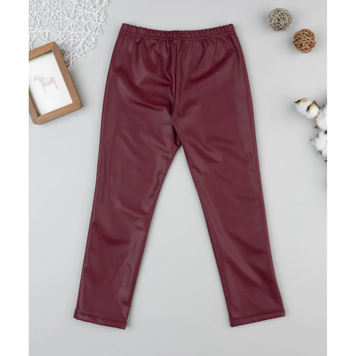 Leggings efecto piel burdeos para niña