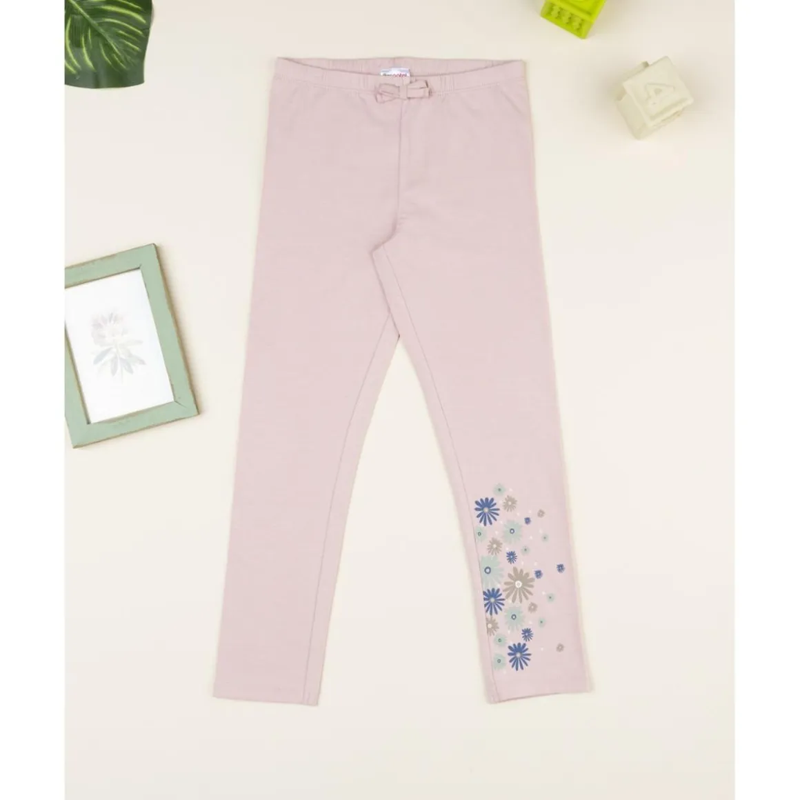 Tiernos leggings en rosa claro con bonito estampado floral en la pierna. Con cintura elástica para mayor comodidad. Perfectos para combinar con cualquier prenda.