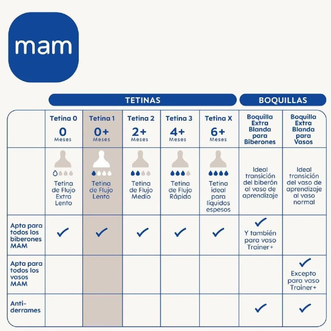 Mam – Pack 2 tetinas silicona nº 1, tetinas de flujo lento para una combinación fácil entre el pecho y el biberón. ㅤ