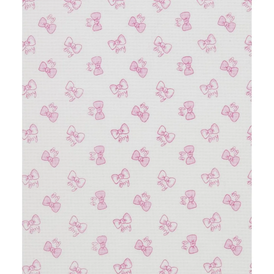 Esta dulce manta para cuna está elaborada en algodón de nido de abeja blanco y presenta un encantador estampado de lazos en color rosa. Con unas dimensiones de 100×120 cm, es perfecta para proporcionar calidez y confort a tu pequeña.