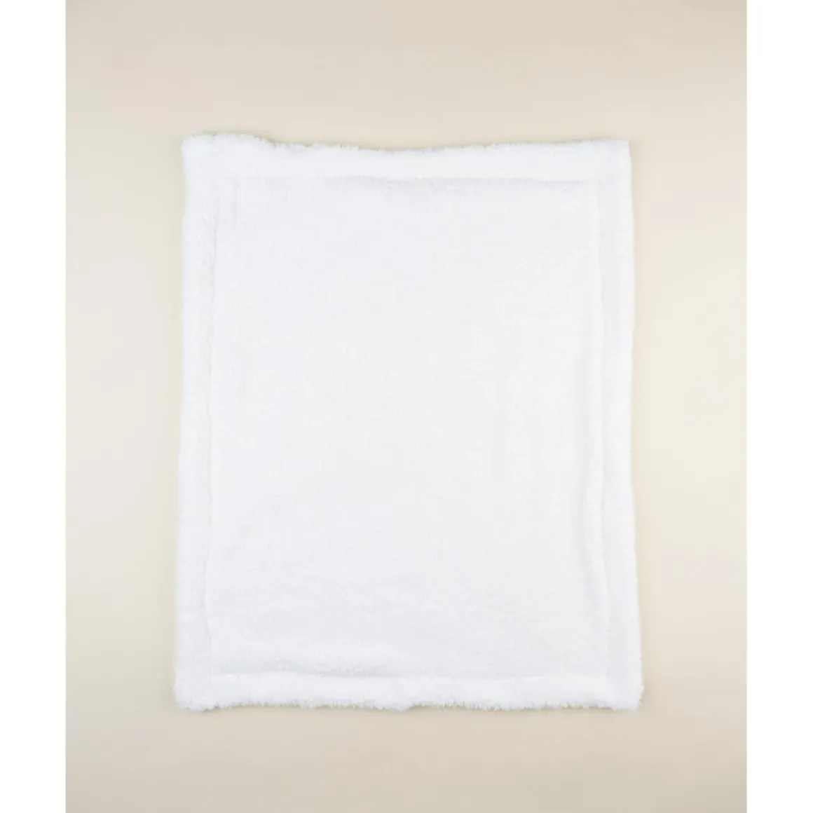 Manta de chenilla suave y manejable para recién nacidos, en total blanco con detalles de peluche. Su tejido certificado Oeko-Tex garantiza seguridad y ausencia de sustancias nocivas, ideal para proteger y abrigar al bebé con delicadeza.