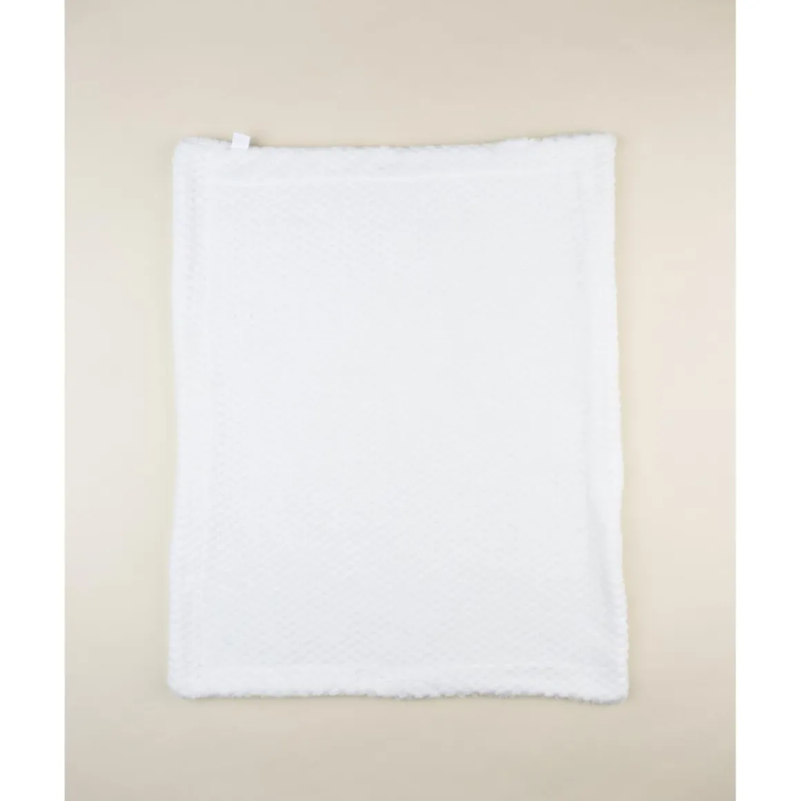 Características: Manta unisex, color blanco, textura suave con peluche, ligera y fácil de manipular, segura para recién nacidos.