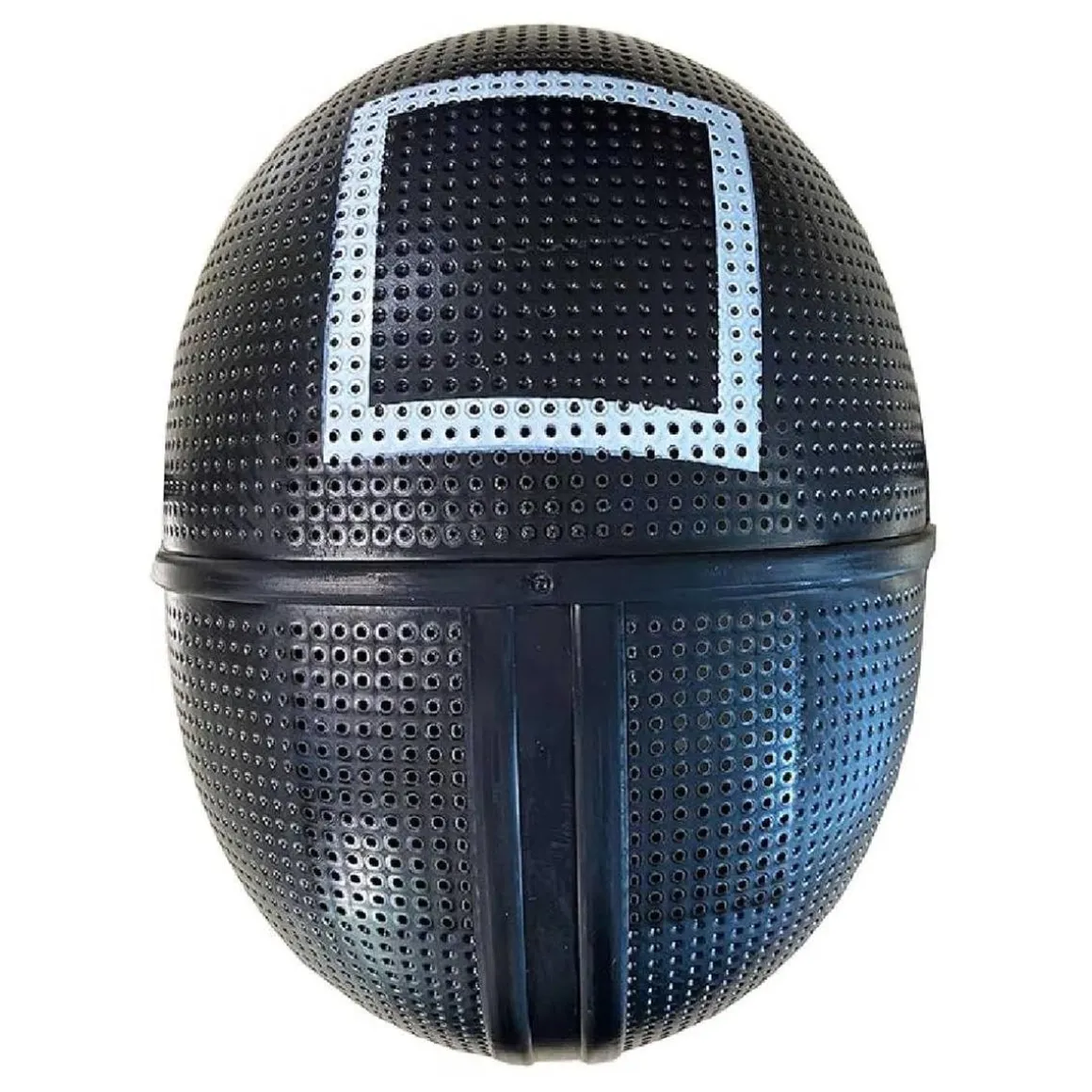 Diseño fiel a la serie: Esta máscara reproduce meticulosamente el icónico símbolo cuadrado de los Guardianes en «El Juego del Calamar», permitiéndote encarnar a uno de los enigmáticos vigilantes de la serie.