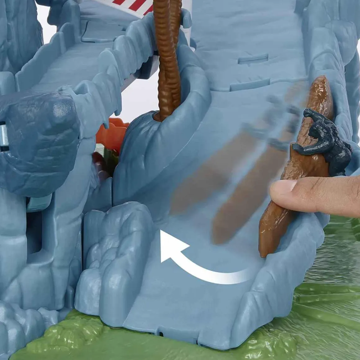 Baja por el volcán para activar la tirolina del investigador. La peligrosa fauna y los terrenos rocosos crean más obstáculos que bloquean la ruta de salida.