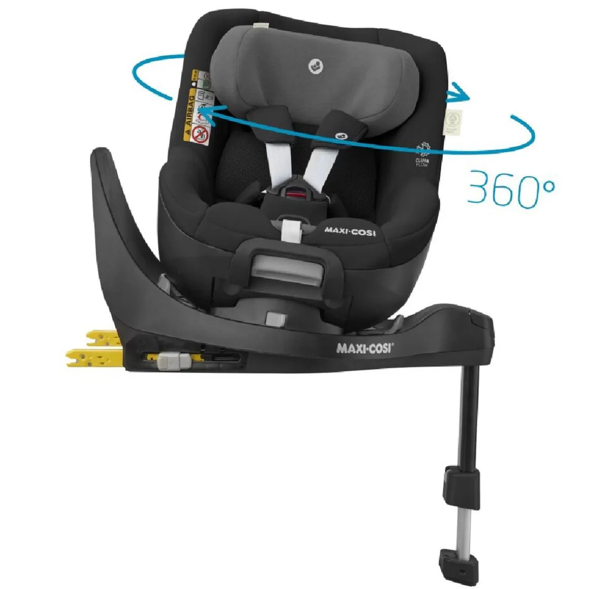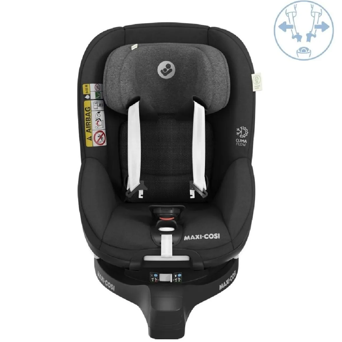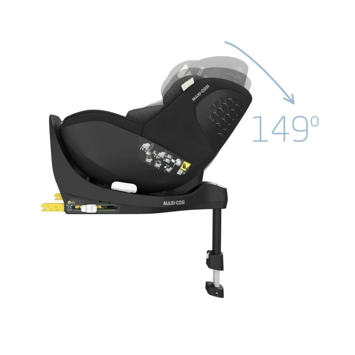 Dispone de una base ISOFIX integrada con pie de apoyo, así como cinturones y reposacabezas ajustables simultáneamente en altura. Además, cuenta con un botón antiuso inapropiado para garantizar el viaje en el sentido contrario a la marcha.