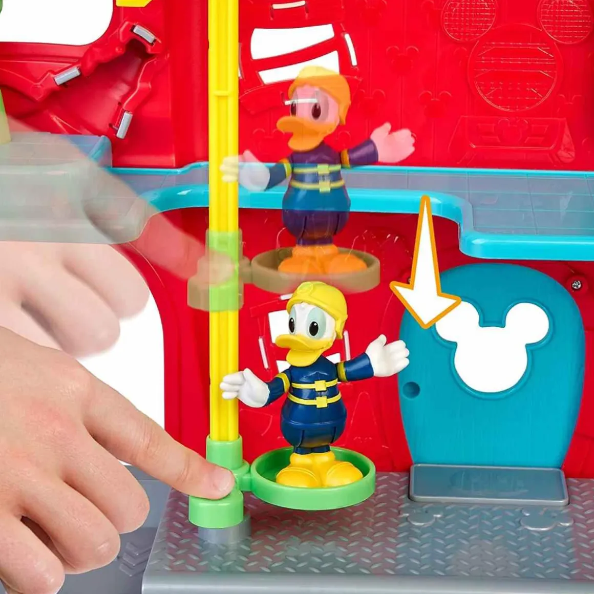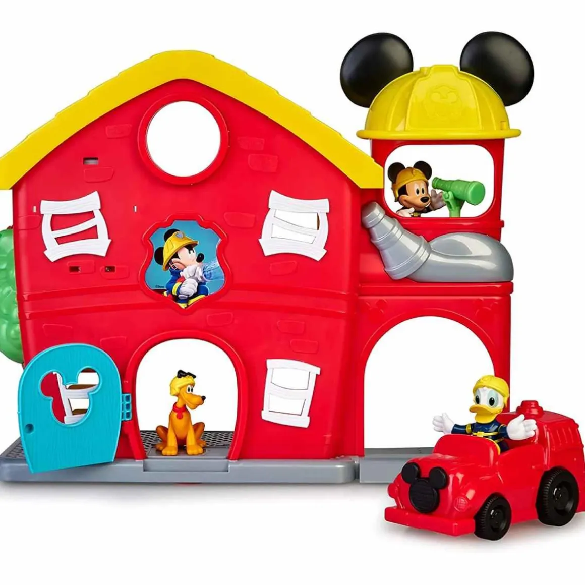 Mickey – Estación de Bomberos, una estación de bomberos con luz y sonido con dos plantas conectadas por una escalera y una barra, en las que podrás jugar todo el día.