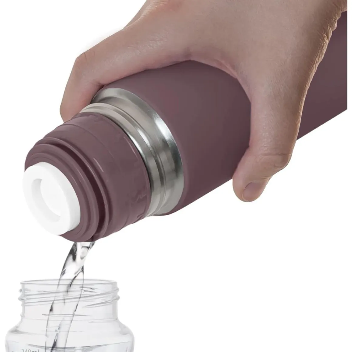 - Diseño ergonómico y seguro: El exterior del termo presenta un tacto suave y gomoso que facilita su agarre y manejo, evitando deslizamientos accidentales. Además, su sistema de vertido fácil con cierre por pulsación permite servir las bebidas sin derrames, abriendo y cerrando el termo con una sola mano.