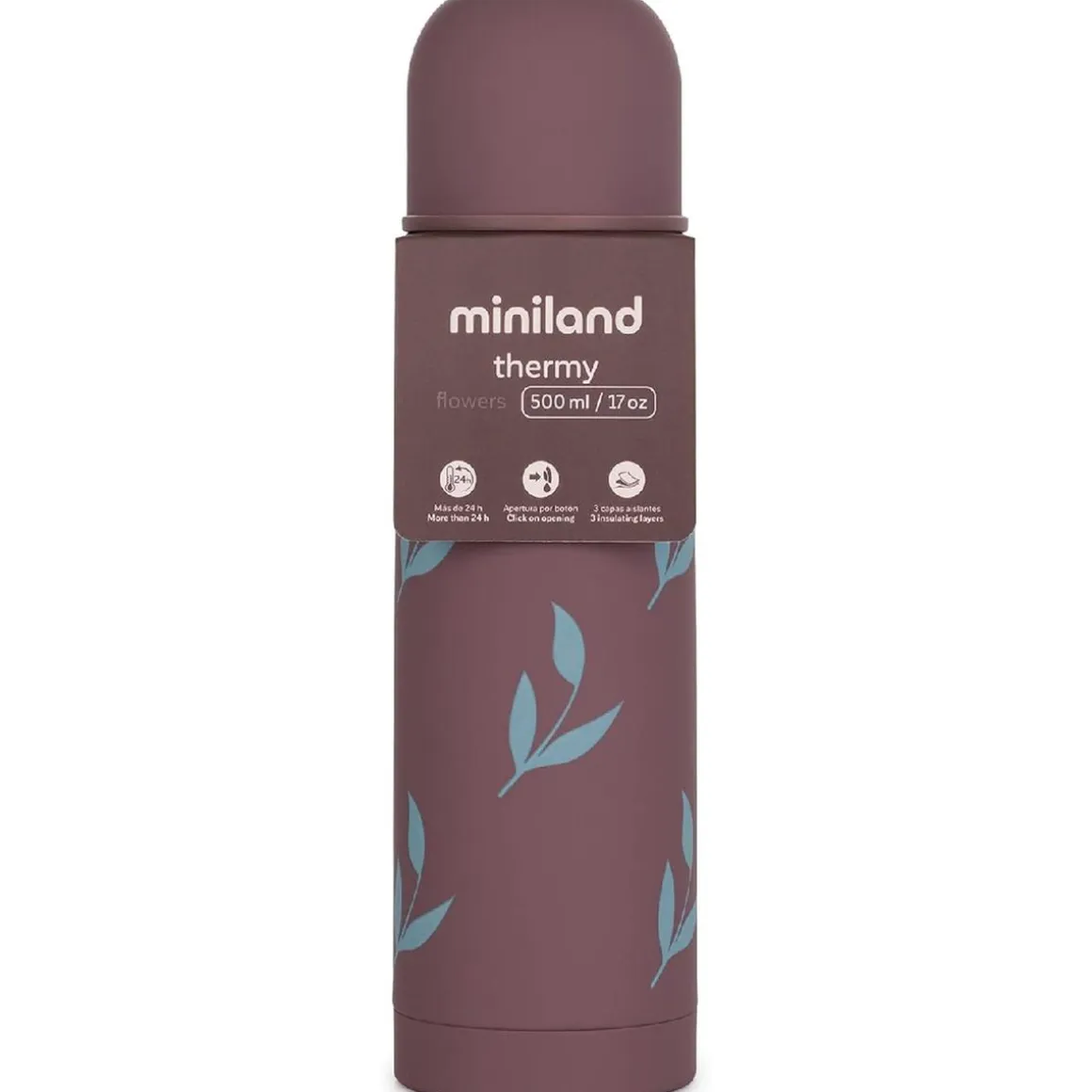 Miniland – Termo para líquidos 500 ml Thermy Flowers, con una capacidad de 500 ml, es la solución ideal para mantener las bebidas de tu bebé a la temperatura deseada durante más de 24 horas.