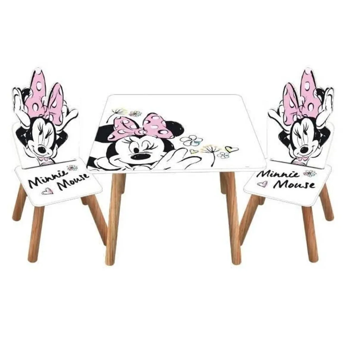 Minnie Mouse – Conjunto de mesa y sillas infantiles en madera, diseño Minnie Mouse ㅤ