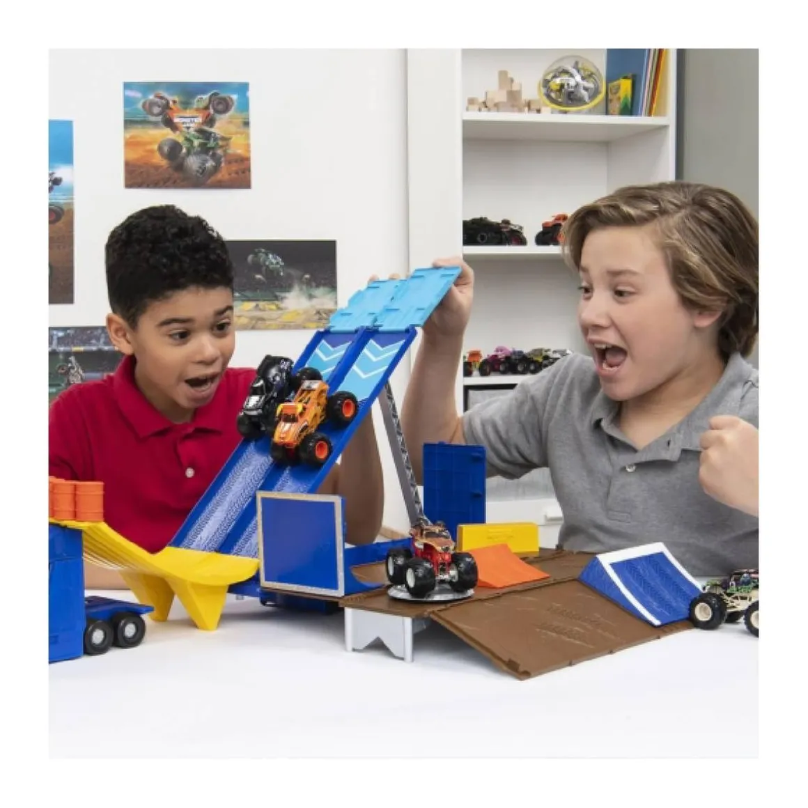 ¡Tu escenario de saltos Monster Trucks! ¡Coge a El Toro Loco y lánzalo por la rampa!