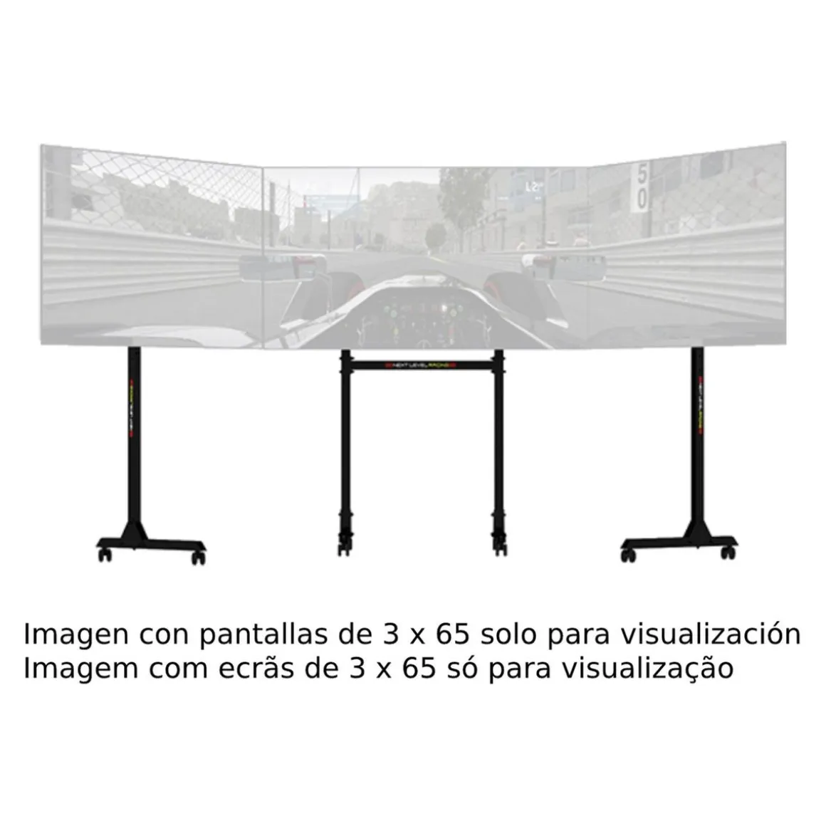 Next Level Racing Soporte independiente para tres monitores. El soporte admite tres pantallas de 32″- 65″ que permiten un impresionante 195° de visión periférica para una experiencia increíblemente realista. Una solución perfecta para una experiencia de simulación inmersiva.