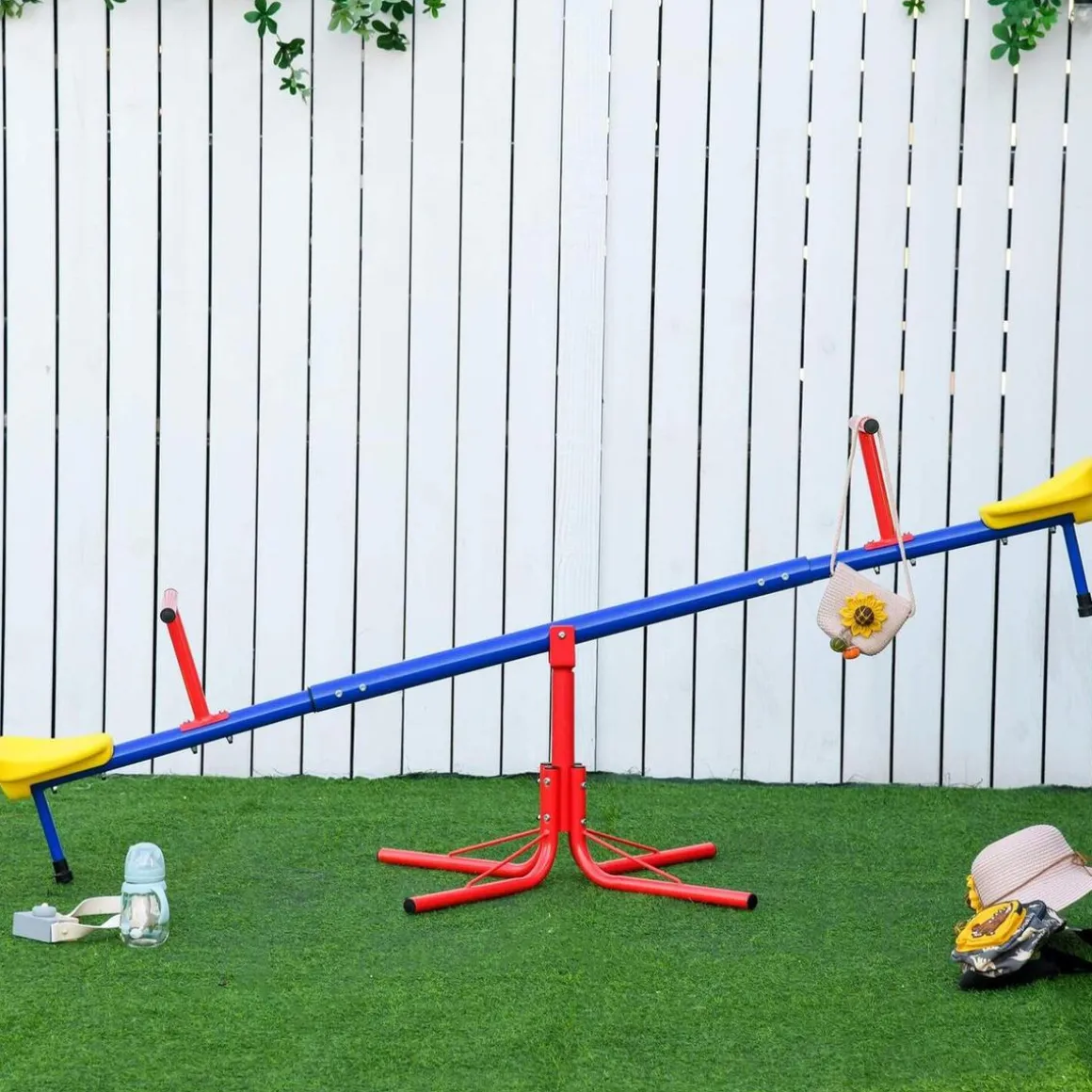 Outsunny – Balancín Giratorio 360° 180 cm. ¿Buscando un juego divertido para que tus hijos jueguen en el jardín? Este balancín de Homcom es un juguete infantil ideal, ya que les permite jugar al aire libre con total seguridad. Además, no es un sube y baja tradicional, sino que añade diversión con la opción de girar 360 grados.