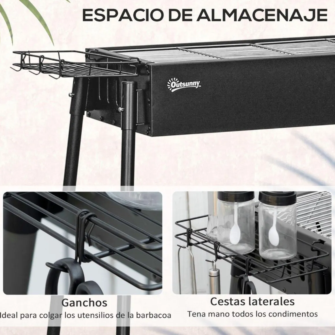 Outsunny – Barbacoa de carbón portatil con dos parrillas, una barbacoa con una gran zona de parrilla, que ofrece suficiente espacio para asar diferentes tipos de carnes y verduras. Ideal para cocinar entre 5-15 porciones.