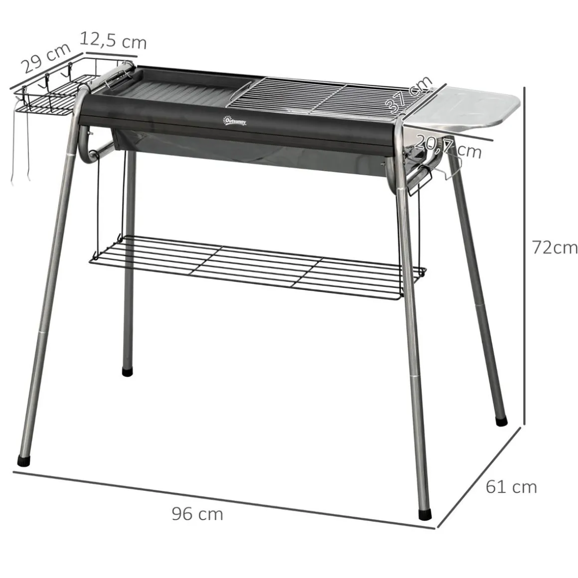 Outsunny – Barbacoa de carbón portatil con parrilla y plancha, una barbacoa con una gran zona de parrilla y una plancha, proporcionando suficiente espacio para asar y cocinar diferentes tipos de carnes y verduras. Ideal para cocinar entre 8 y 15 porciones.
