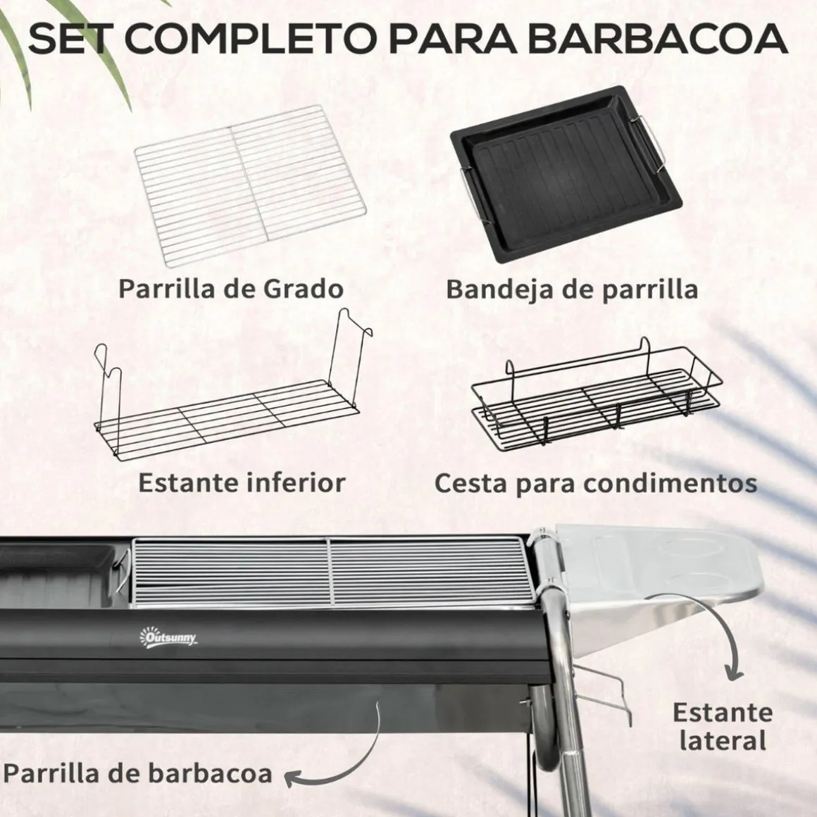 - Barbacoa de carbón compuesta por parrilla y plancha.