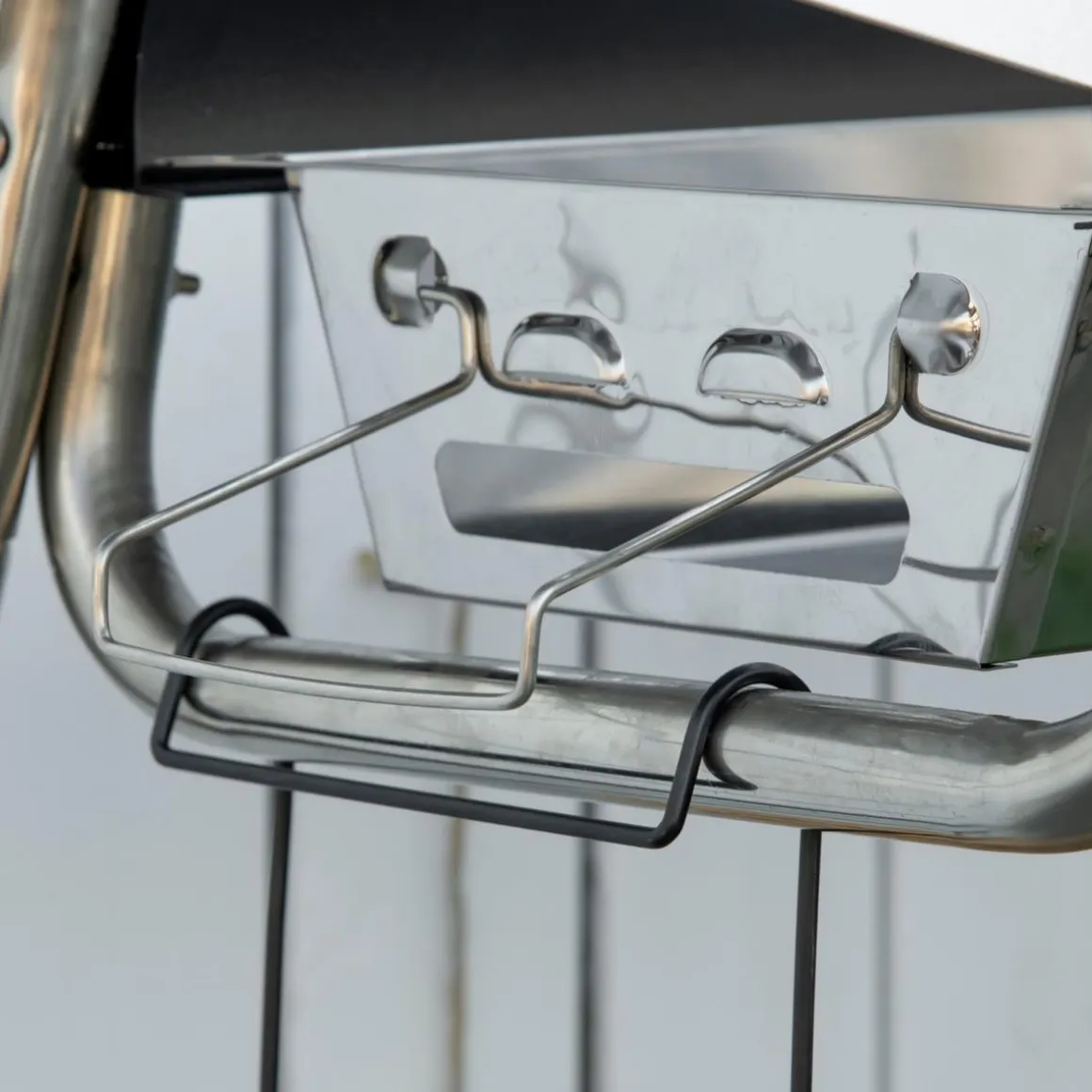 - Tiene 2 baldas laterales con ganchos y una balda inferior para guardar especias y tener los utensilios siempre a mano.