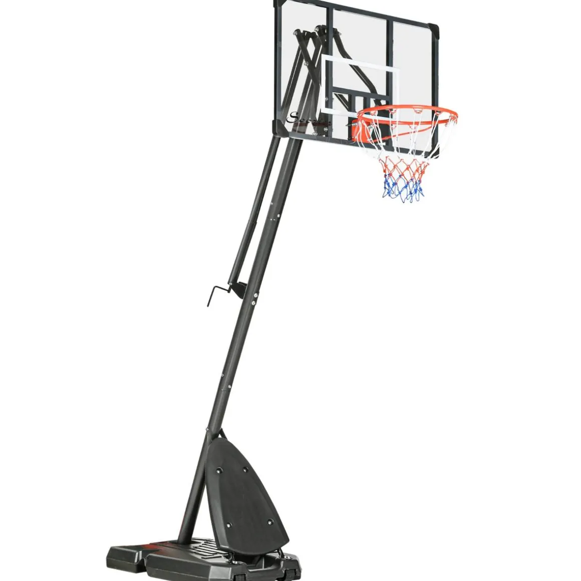 Outsunny – Canasta baloncesta regulable con base. Diviértete lanzando y haciendo mates con esta canasta de baloncesto. La altura ajustable la hace adecuada para todas las edades. El aro tiene una estructura de acero resistente, un tablero de PC de alta resistencia y una red de baloncesto confiable, mientras que la base se puede llenar con agua o arena para mantenerla en su lugar de forma segura. Las ruedas en la parte inferior te permiten mover fácilmente la canasta y disfrutar del baloncesto al aire libre.