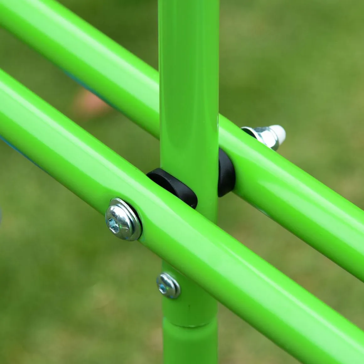 - Estructura metálica reforzada en forma de A con clavijas para fijar en el suelo