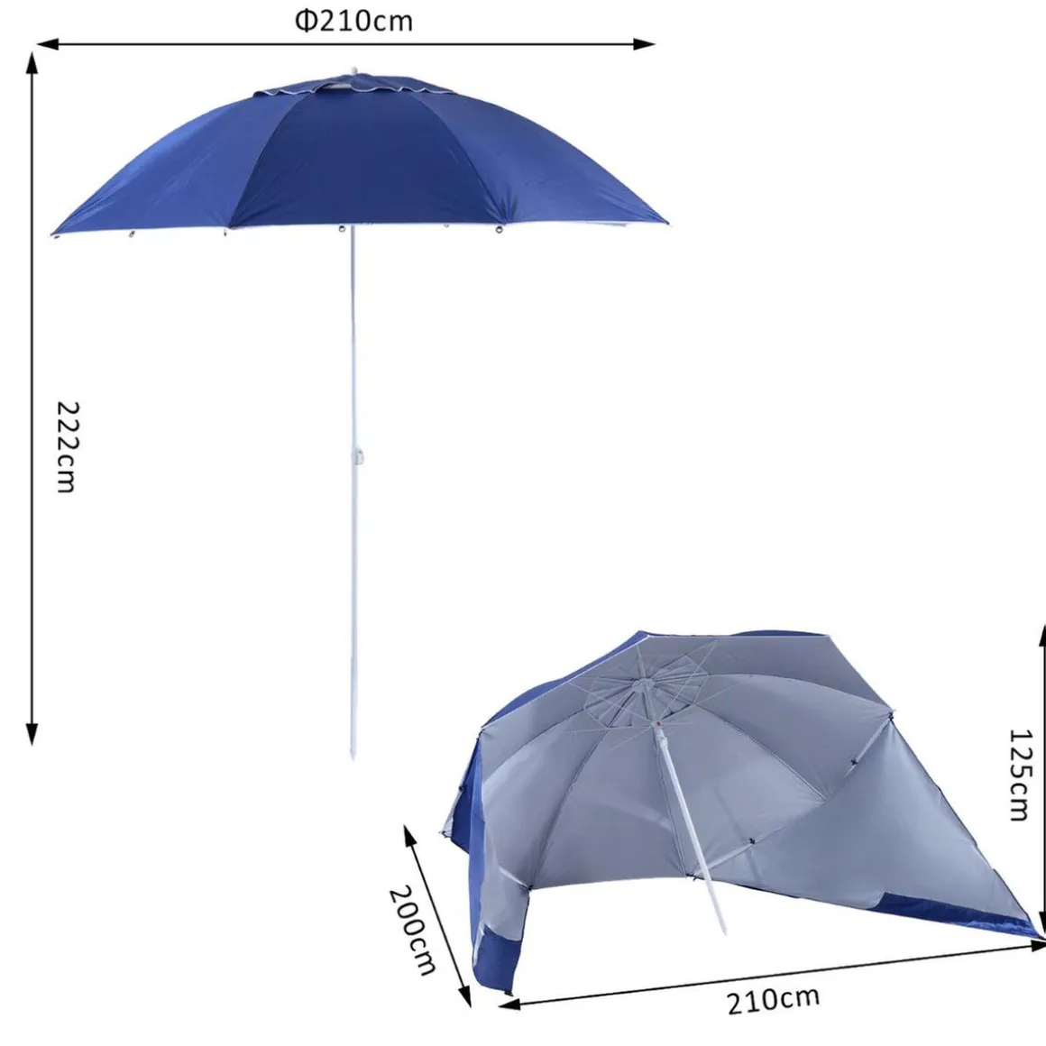 Outsunny – Parasol con dos paneles laterales Azul, una sombrilla de playa que tiene un diseño 2 en 1. Se puede usar como un parasol tradicional o usando los paneles laterales transformándolo en un espacioso paravientos.