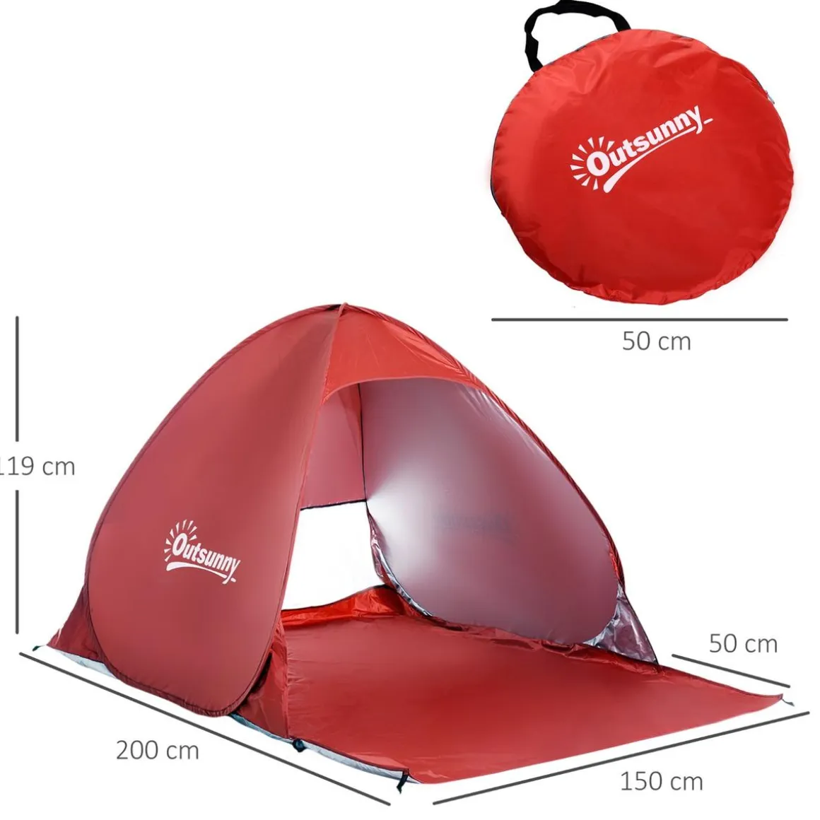 Outsunny – Tienda Pop Up playa Rojo, este paravientos es la solución perfecta para resguardarte del sol y el viento en la playa, de camping, pícnic, etc. Adecuado para 2-3 personas.